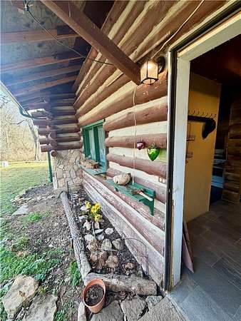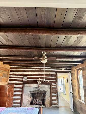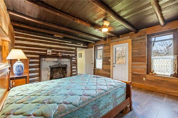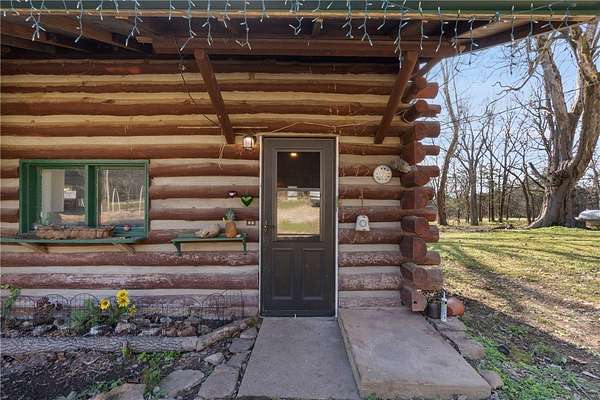 Hidden just outside of Eureka Springs, this 1840 log cabin homestead feels like stepping into another era- a rare piece of Ozark history set on 2 peaceful acres with a natural spring, flowing creek, barn and garden space. The 2 bedroom cabin is rich with authentic character: hand-hewn log walls, exposed beams and a striking stone fireplace anchoring the heart of the home. Warm wood tones and rustic textures create an atmosphere that feels intimate and timeless, blending historic craftsmanship with everyday comfort. Outside, the property becomes a private retreat. The sound of running water, mature trees, and open years space invite homesteading, gardening, or quiet escape living. This is not just a home- it's a place to live differently. Properties with history, water, acreage, and proximity to Eureka Springs are extraordinarily rare.