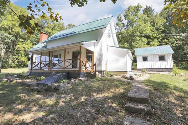 Come home to your own relaxing country-side retreat on over 2 private acres. Scenic views surround this lovely Cape Cod 3 bedroom, 1 bath home that's been beautifully remodeled. The front door opens to the stylish, updated features of this home with a welcoming layout. Enjoy the view of the valley and the historical Hopewell Church Covered Bridge from the large windows Outside there are three outbuildings perfect for workshops, barns or whatever you need! There's an historic summer kitchen with cold storage. The house and hot water tank are heated with a new outside central boiler. Home includes propane tank. Exterior siding new in June 2025.