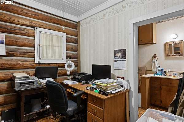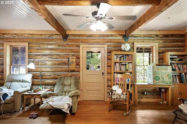 Charming Log Home on 16 Acres - Perfect Country RetreatEscape to your own private paradise with this beautiful log home set on 16 wooded, fully fenced and cross-fenced acres. The spacious master suite includes a loft, walk-in closet, and private bathroom, offering a cozy yet open retreat. Enjoy peaceful mornings and serene sunsets from the large covered wrap-around deck-ideal for entertaining or relaxing.Inside, the home features rustic charm and solid craftsmanship, with a wood stove for cozy winters and high-speed internet for modern convenience. Though it could use some updating, the potential is truly inspiring.The land is a dream for hobby farmers or nature lovers, with three horse stalls, a chicken coop, duck house, wood shed, pond and a creek. An established orchard includes pear, apple, plum, and walnut trees, and there's a sunny spot just right for a garden. Whether you're looking for a peaceful lifestyle, a working homestead, or a weekend getaway, this property offers unmatched tranquility and endless possibilities.
