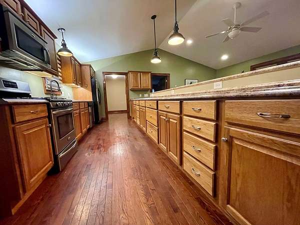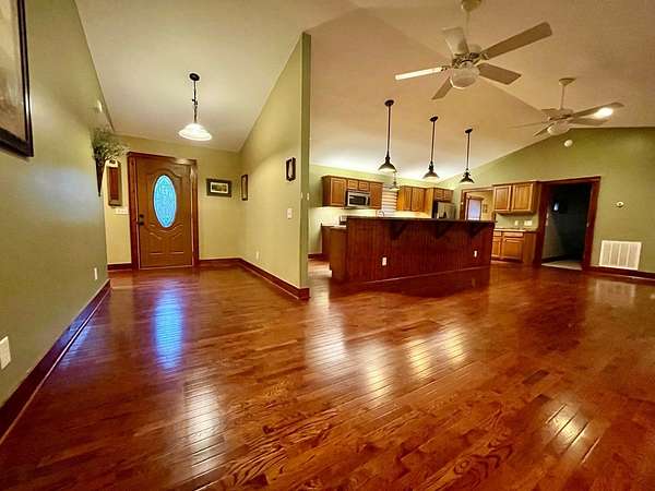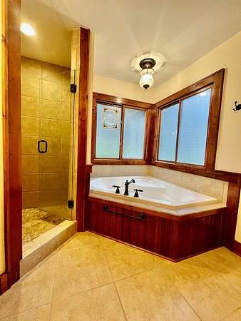 - Bonus Room, Breakfast Bar, Cathedral/Vaulted Ceiling, Ceiling Fans, Cell Service Available, Ceramic Tile Bath, Formal Dining Room, Garage Door Opener, Great Room, Kitchen/FR Combo, Large Master Bedroom, Main Level Living, Open Floor Plan, Primary On Main Level, Primary W/Ensuite, Rec/Game Room, Smoke Detectors, Walk-In Closets, Whirlpool Tub, Window Treatments, Workshop