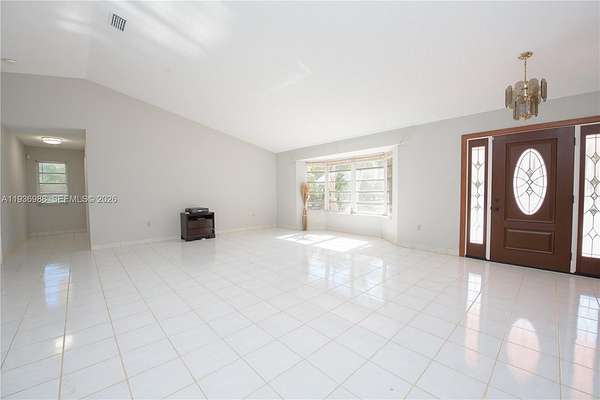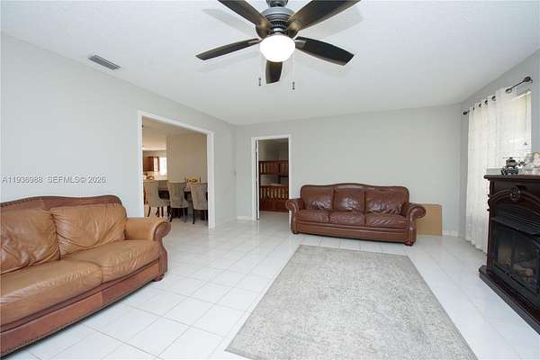 Welcome to your private retreat on 4.75 acres! This 4-bedroom, 4-bath home features high ceilings, an open layout, tile floors, blinds, and ceiling fans throughout. The spacious kitchen offers an eat-at island, stainless steel appliances (microwave, stove, refrigerator, dishwasher), and a pantry. Enjoy gatherings in the family room with French doors opening to outdoor living. The home includes a laundry room with washer and dryer, a serene primary suite with dual sinks and tub/shower, plus a flex room/office. Outdoors you'll find a covered patio, pond, tropical fruit trees (see list attached), an old chicken coop, whole-home water filtration, propane fireplace, generator with tank, AS-IS detached 2-car garage, and carport--perfect for country living with modern comfort. PROOF OF FUNDS AND/OR PRE-APPROVAL LETTER REQUIRED PRIOR TO SCHEDULING A SHOWING OF THE PROPERTY!