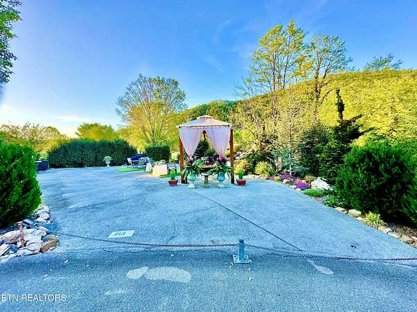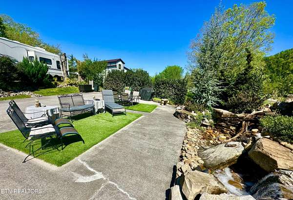 Exceptional opportunity for Class A coach, motorcoach, or RV, featuring easy access and a spacious layout. The site is designed to accommodate a wide variety of recreational vehicle, in a lavish and well-appointed outdoor setting, and is configured for a single RV. Within the gated Sundown Resort, this combined space offers the rare advantage of two parcels merged into one with a single HOA fee. Positioned approximately one mile from the entrance to Great Smoky Mountains National Park, this property provides convenient access to outdoor recreation while remaining close to everyday essentials in Townsend, with access to Maryville, Knoxville, Pigeon Forge, and Gatlinburg. This thoughtfully improved double lot features panoramic 360-degree views, capturing not only surrounding mountain scenery but also expansive sky and a peaceful country setting. The end-of-street positioning results in only one neighboring property, contributing to a more private and exclusive environment. Professionally curated landscaping enhances the setting with mature greenery, hardscape elements, and integrated lighting. A defining feature of the property is the custom waterfall and fountain installation, creating a tranquil atmosphere with continuous ambient water sound that enhances the overall outdoor experience. The site is further improved with designated areas for outdoor dining, a grilling space, and a covered swing area, offering multiple options for relaxation and entertaining. The property also benefits from proximity to a secondary community access gate, which may be available for use by request through the association and can provide additional convenience for larger coach entry and maneuverability. Community amenities at Sundown Resort include two swimming pools, two playgrounds, basketball and pickleball courts, bathhouses, coin laundry facilities, and both indoor and outdoor gathering spaces, that host a variety of community events. Generator use is required from late November through March. Owners utilize their properties throughout the year. Buyer to verify all information.