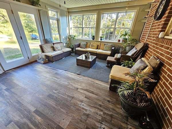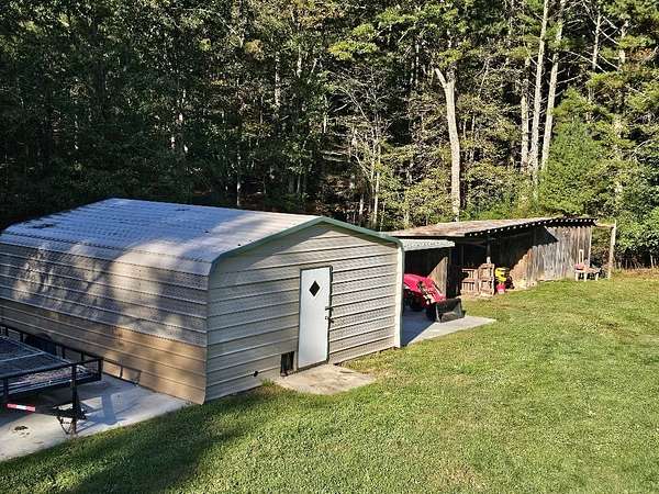 Escape to your own private retreat with this beautiful 9.4-acre secluded mini-farm just outside the charming town of Independence, VA. This brick ranch home features 3 bedrooms and 2 baths, offering an open floor plan with hardwood floors. The updated kitchen boasts stainless steel appliances (which convey), an island, backsplash, and ample cabinet space. Enjoy the spacious living room, a cozy sunroom, and a full walkout basement for additional storage or potential living space. Comfort is assured year-round with a heat pump and a durable metal roof. Outside, you'll find a mix of open and wooded land, a nice spot for enjoying nature or raising animals. The property includes several outbuildings, sheds, run-in shelters for livestock, a chicken coop, and a thriving orchard with apple, peach, and pear trees. A picturesque ridgetop offers nice views, and wildlife frequently passes through the land, adding to the peaceful country setting. All this just minutes from the New River, shopping, and local schools-this place has a nice blend of privacy, convenience, and rural charm. Call Today!