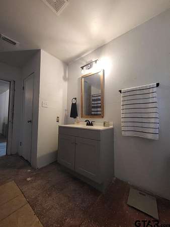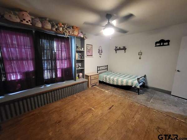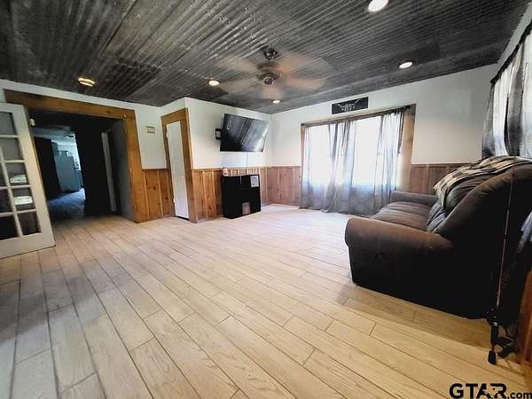 This larger home has four bedrooms and one bath. It has been decorated with a rustic look. The house length front porch has a tin ceiling as well as some of the ceilings in the home. Family room has cedar chair rail, wood grain tile, and corrugated metal ceiling. Extra wide hallway has bedrooms off either side leading to large kitchen dining combo. Covered porch spans the front of this house. Storage closet in living room is nice. CH/A gas heat and hotwater heater. The kitchen has a knee wall dividing it and the dining area. Wash room is off of the kitchen and serves as an entry from the attached one car carport. Cement drive extends from carport. Space heaters are used for heat and there are none currently with the home. The yard is approx .35 of an acre. HVAC 1 yr old. House newly leveled. Cosmetic repairs still needed. Owner financing available with 20% down.