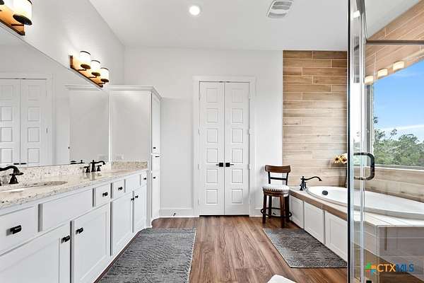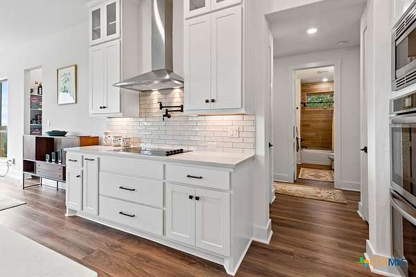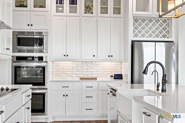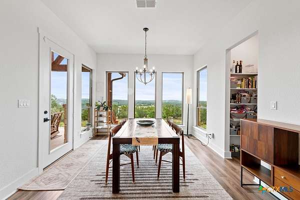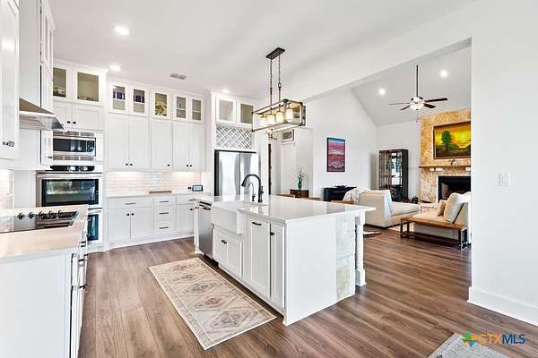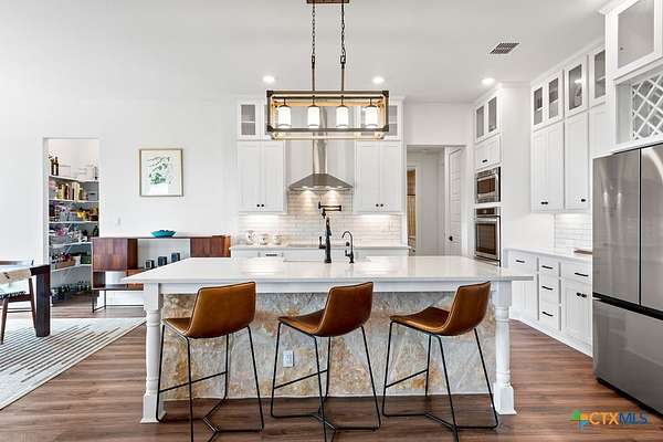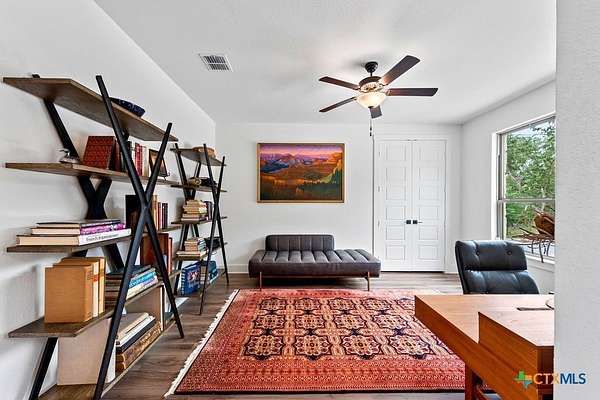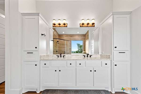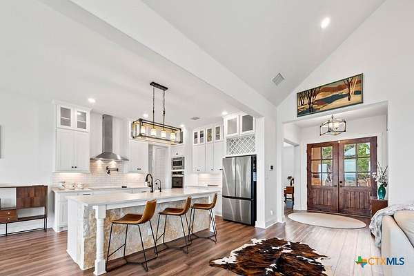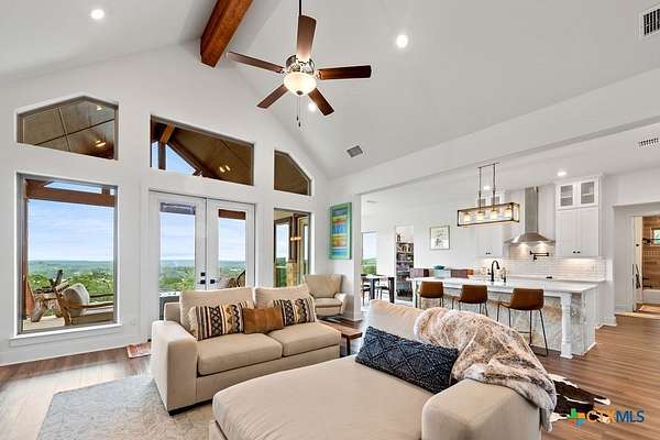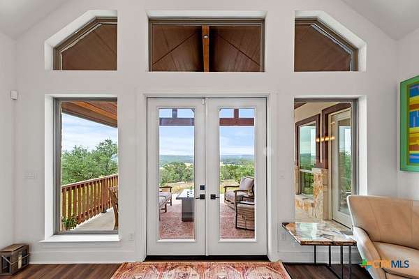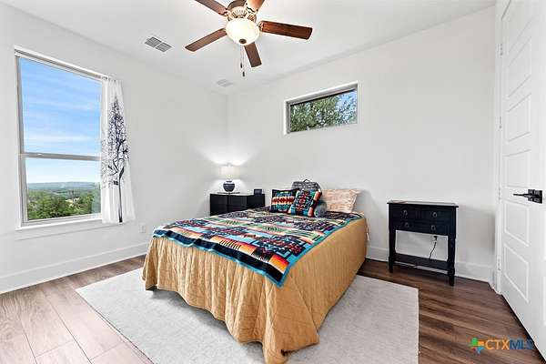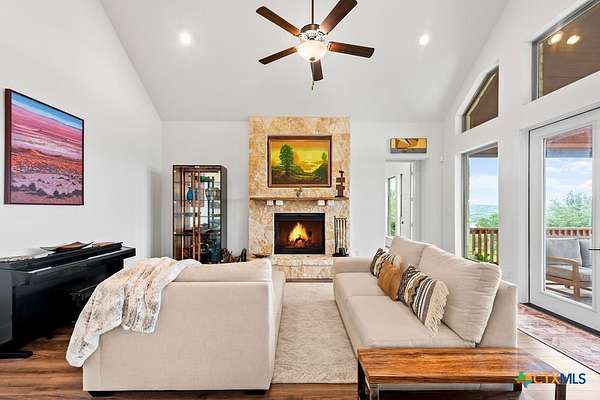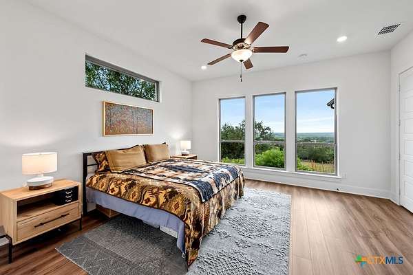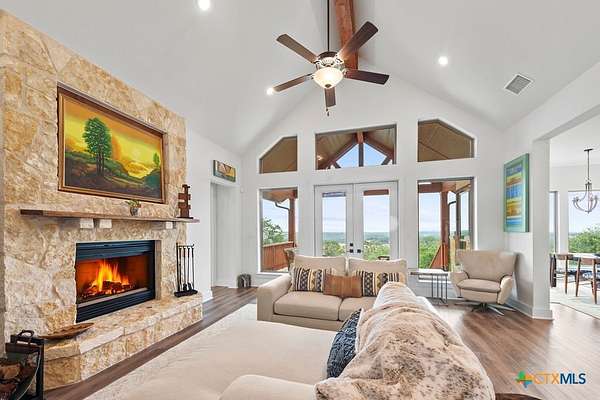 Hill Top Views! Tucked privately on the pinnacle of a gently curving landscape in the heart of the Texas Hill Country, this sprawling property features a 2,974 sqft home nestled on a 2.99-acre lot with the best views in all of Fischer, Texas. Your living room has views that span miles, from the soaring ceilings to the wall of windows. You have a floor-to-ceiling fireplace with a raised hearth. Your kitchen features an island with a limestone base, subway tile backsplash, built-in ovens + microwave, built-in wine rack, farmhouse basin sink, smooth cooktop, and walk-in pantry. Located at the front of the home is a powder room perfect for guests and a dedicated office or mixed-use space. The large primary suite will not disappoint, with its sprawling views through extra-large windows and ample storage spread across two closets, including a huge walk-in closet with custom built-ins. The ensuite features a soaking tub framed by a window with more hill country views, a walk-in shower, a water closet with linen storage, and a double vanity framed by multiple built-ins. Your other bedrooms are generously sized, with a secondary bath conveniently located between them, as a bonus area upstairs. When it's time to relax, venture out into your expansive outdoor living space under the covered patio. Nature enthusiast? You'll love all of the butterflies and hummingbirds. Escape to the Texas Hill Country to play in the waters of Canyon Lake. Enjoy jet skiing on the lake, hiking the various trails near the home, browsing the boutique shops in town, and being close to the main roads. Current appraisal valued at $790K. Whole-house water filtration system. 400 amp Electric service to allow for a guest house. Two thousand twenty-four taxes were $6,467.66. (Appraisal districts' numbers are overstated) Live Life In Luxury With Private, Breathtaking Sunsets From Home!