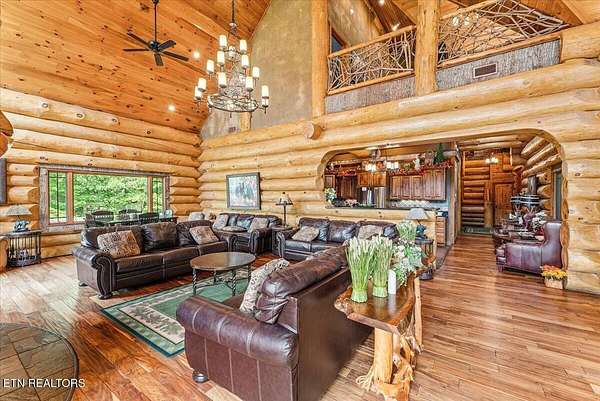 Experience Mountain Luxury at Its Finest. Enjoy this cabin and build another on the adjacent parcel included in this sale! This awe-inspiring log cabin offers a truly exceptional retreat in the heart of the Smoky Mountains. Crafted from massive imported Canadian logs, the home radiates rustic elegance and provides a one-of-a-kind ambiance as you relax in the living room and take in breathtaking mountain views. Each level of the residence unveils thoughtful details and refined touches. Every bedroom is generously appointed with upscale furnishings and stylish decor, while the bathrooms feature custom tilework for a spa-like experience. With 8 beds, and 8 sleeper sofas, over 32 people can sleep comfortably. The spacious game room invites hours of entertainment with billiards and shuffleboard, plus ample space for gathering, cooking, and enjoying drinks with friends and family. A newly renovated theater room seats up to 15 guests-perfect for cozy movie nights or hosting private screenings. During the winter months, warm up by one of three fireplaces or unwind in the hot tub while watching snow blanket the surrounding landscape. Kids will love the custom kid's cabin! Outside the cabin, the prestigious Cobbly Nob community offers world-class amenities, including three swimming pools, a golf course, basketball and pickleball courts, making every day feel like a resort getaway. This smart home provides peace of mind, allowing you to remotely monitor and control security systems, doors, and thermostats-no matter where you are in the world. Whether you're seeking a serene mountain lifestyle or a high-yield investment, this property delivers. With a remarkable 85% occupancy rate and gross income potential of $320,000 annually through short-term rentals, the financial opportunity is significant. The sale also includes the adjacent lot, (319 Overview Dr) totaling 2.04 acres, ensuring unrivaled privacy and expansion options. Schedule your private showing today and discover mountain living at its most luxurious.!