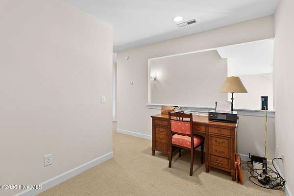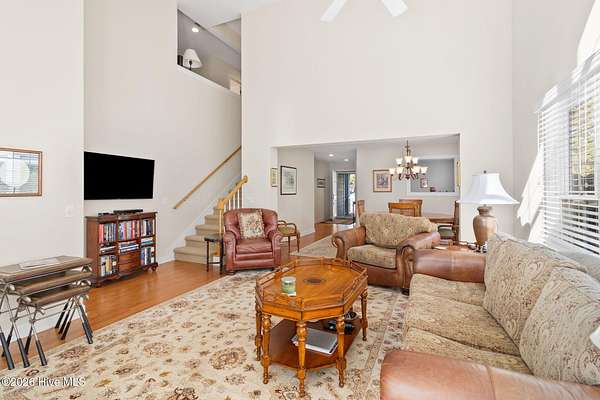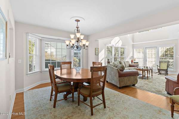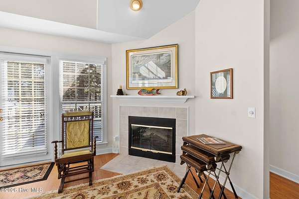 Welcome home to this exterior unit in Longleaf County Club of Southern Pines! 213 N Knoll has a charming covered front porch stoop, a 2024 roof and siding, thermal windows, gutters, and a Nest thermostat. Inside, the foyer opens to hardwood floors, recessed lighting, ceiling fans, and a seamless flow between the dining room and living room, complete with a window pass-through to the kitchen. The living room showcases vaulted ceilings, plush carpet, and an electric fireplace with remote, creating a warm and inviting atmosphere. The eat-in kitchen offers granite countertops, tile floors, electric stove with microwave above, dishwasher, refrigerator, and ample cabinet space. The downstairs bedroom has access to a bath with granite counters, tile floors, linen closet, and walk-in shower. The spacious primary bedroom features vaulted ceilings, a seating or vanity area, two closets including a walk-in closet, and a private en-suite with dual sinks, tiled walk-in shower, water closet, linen closet, and additional storage. Upstairs, enjoy a versatile loft or office with a brand-new skylight and blinds (never used), a guest bedroom with trundle bed, and a tiled tub/shower combo bath with linen closet. The downstairs laundry room includes a washer and dryer ,just 3 years old, with cabinets above. The walk-in attic with insulated door and HVAC in the attic above provide even more functional storage. The carport also includes additional storage. This home blends thoughtful updates, flexible livings space, and modern comfort all in one impressive package. All furniture is included. Schedule your showing to make this home yours!