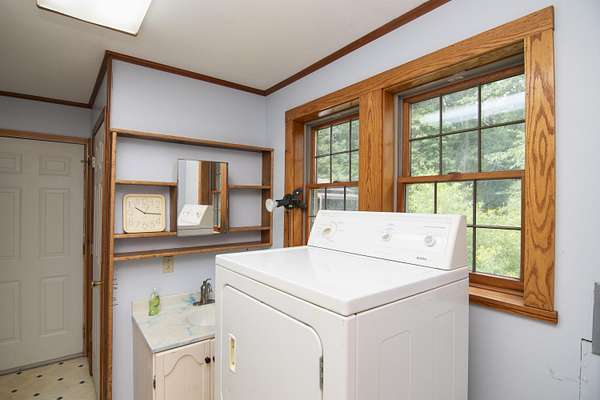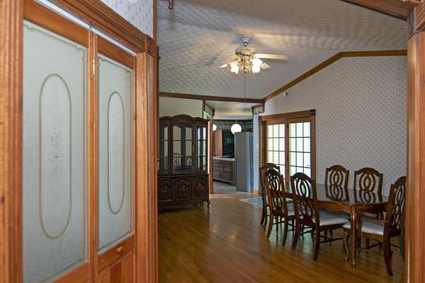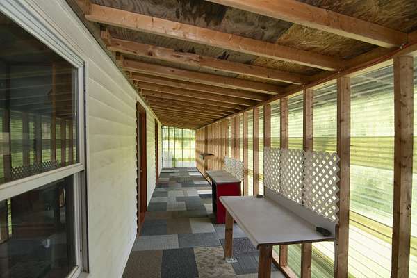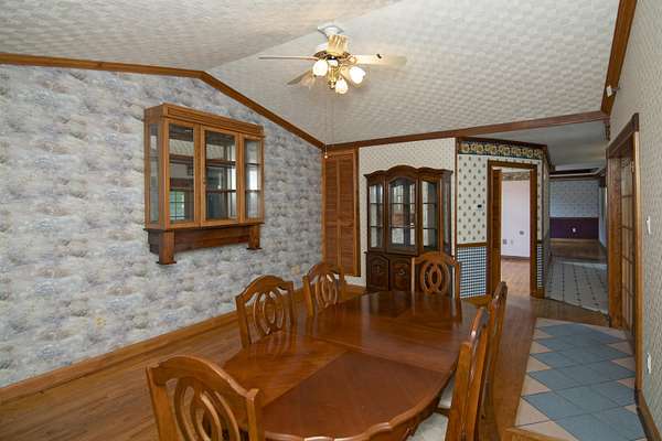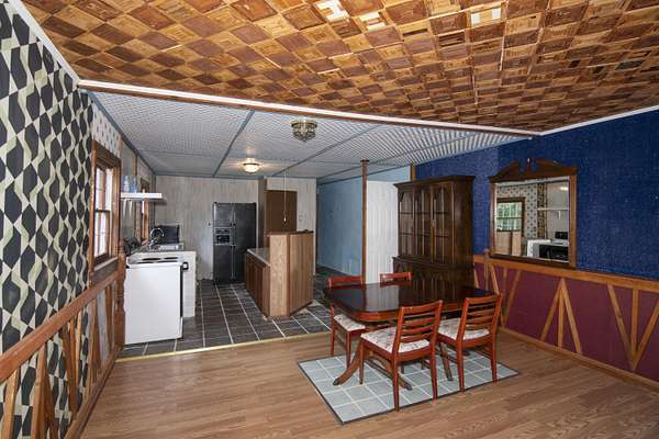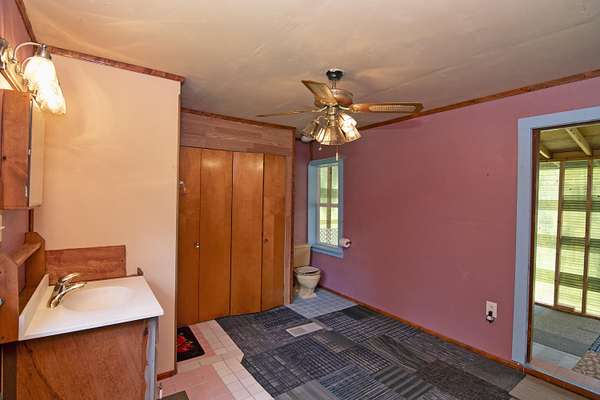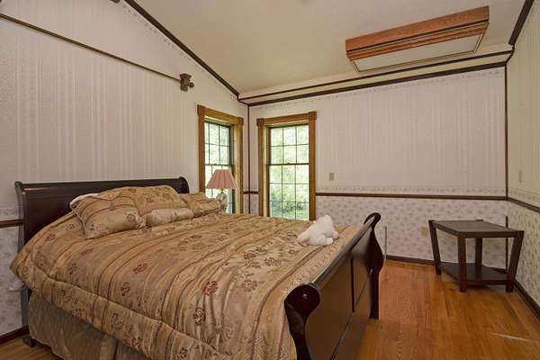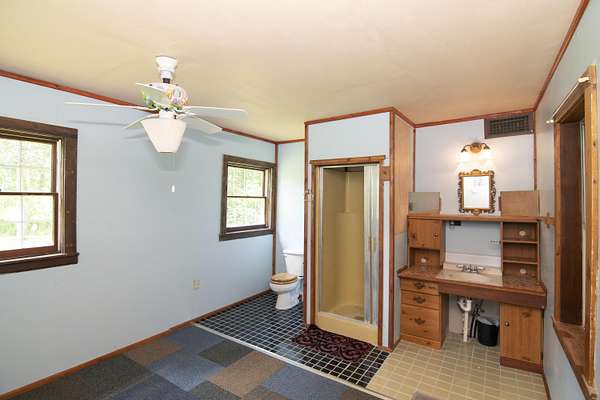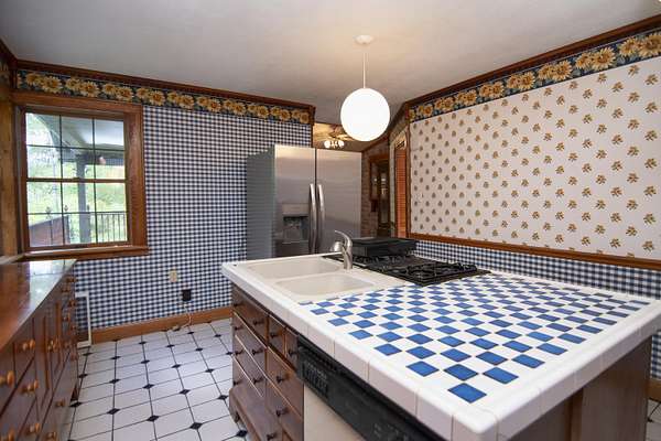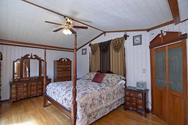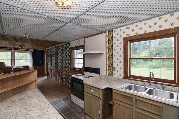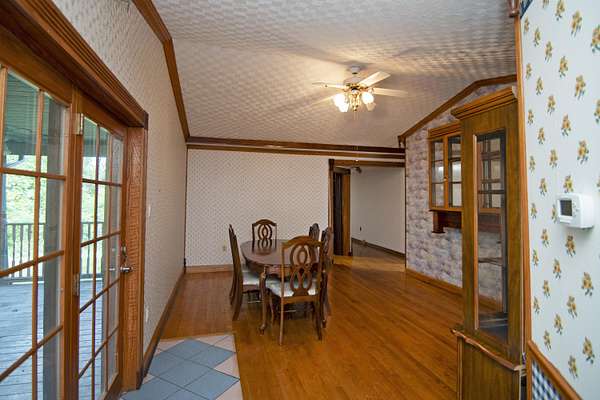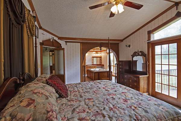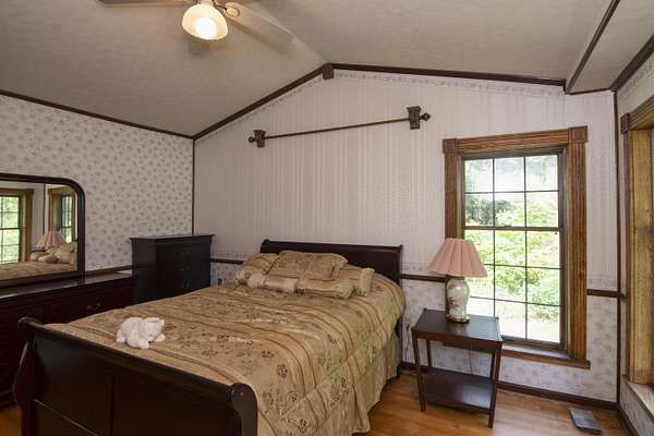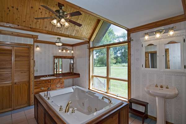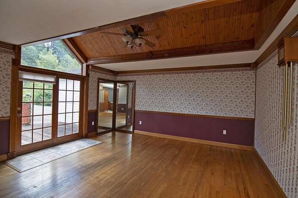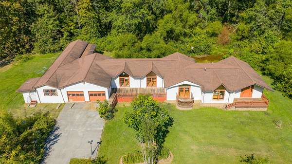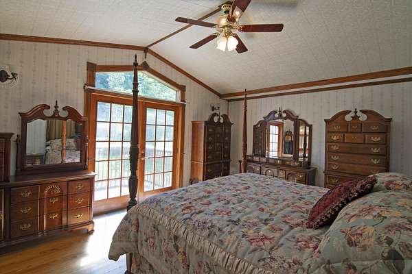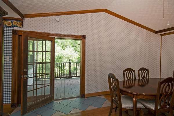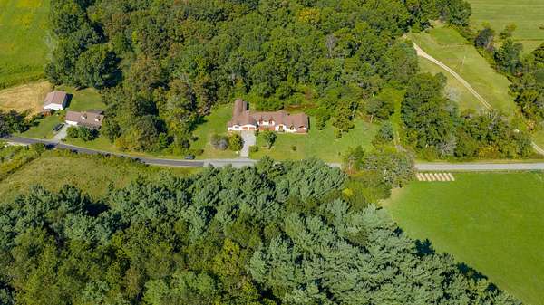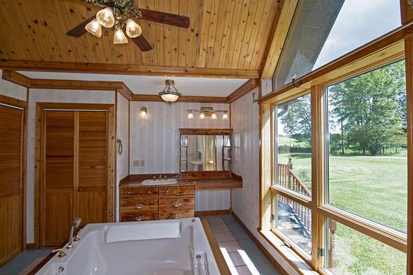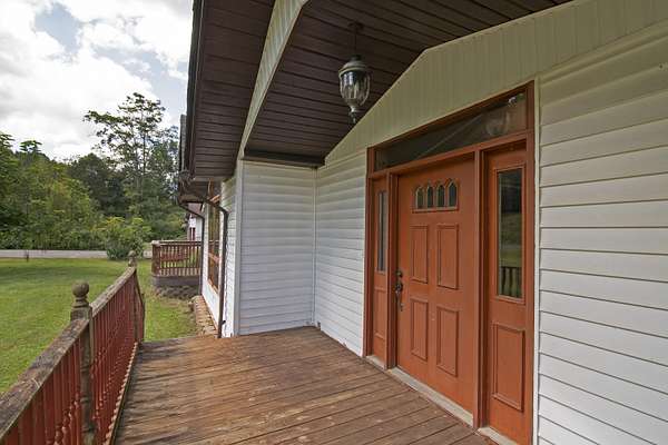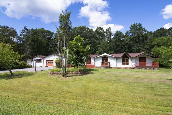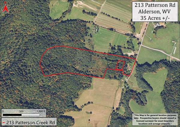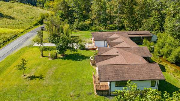 Patterson Creek Retreat - Country home on 35+/- acres in western Greenbrier County. This eclectic one-story structure bordering Patterson Creek served as both a private residence and an informal retreat center. Features include living and family rooms, a den, a dining room, two ensuite bedrooms, 6 bathrooms, a back porch overlooking a pond, several decks and an attached 2-vehicle garage. Located 10 minutes from the Dawson exit on I-64, the main section consists of the private residence. The retreat center on the other side of the garage has an open-plan living/kitchen/dining space and three small bedrooms with bathroom facilities integrated in each room. The home's main entry opens into the living room, with hardwood flooring, a peaked wood ceiling, wallpaper and a chair rail. The kitchen has cherry cabinetry and a tiled central island with a double sink and countertop gas range (propane). Appliances include a Frigidaire refrigerator and an Amana wall oven and microwave. Just beyond the kitchen, the wallpapered dining room has a ceiling fan, and includes a table with 6 chairs. The dining area opens to the covered back porch which has a ceiling fan and overlooks the pond. The den/library features floor-to-ceiling built-in bookshelves on two walls, and an attractive beadboard ceiling. The family room is located at the far end of the home. This room has wainscoting, oak flooring and a chandelier. It opens to a covered deck facing the front yard. There are two large bedroom suites. Both are furnished with antique beds, dressers and side tables. The first suite has a jetted tub and a pedestal sink. This bedroom has French doors opening to a private deck. The second suite is a corner room with a view of the creek. Its tiled ensuite bath has a shower-tub and a pine vanity with a solid surface sink. The residential portion of the home includes a third bathroom with a shower. This also serves as the laundry room, with a Kenmore dryer and a washer hookup. The retreat center has manufactured wood flooring. The kitchen has laminate counters with a double stainless-steel sink. It includes a Tappan range, a Whirlpool refrigerator and a GE microwave. There are hookups for a washer and dryer. The great room leads to a hallway and three rooms that combine the features of a bedroom and bathroom. Patterson Creek runs through the property, just behind the home. The location is in a quiet rural area surrounded by rolling countryside and small farms, approximately 35 minutes from either Lewisburg and Beckley, and a 10-minute drive from the New River. Location 213 Patterson Creek Road Alderson WV 24910 Greenbrier County Latitude: 37 degrees 49' 15" N Longitude: 80 degrees 43' 52" W Elevation: 2450 feet Schools: Smoot Elementary School Western Greenbrier Middle School Greenbrier West High School Home Information Modular Year built: 1996 Total finished square feet: 3139 Total Rooms: 12 Total Full Bathrooms: 6 Lot: 35+/- acres Siding: Vinyl Foundation: Concrete Block Roof: Shingle Floors: Hardwood, Laminate, Vinyl HVAC: Electric, Propane Kitchen Counters: Laminate Utilities Water: Well Sewer: Septic Natural Gas: Propane Items to Convey: Ceiling fans, refrigerator-freezer (2), countertop range (gas), wall oven, electric range, microwave (2), dryer, miscellaneous furnishings Legal and Tax Information Greenbrier County Blue Sulphur District Map: 20 Parcel: 41 Deed Book: 502 Page: 322 Also located in Summers County Green Sulphur District Map: 19 Parcel: 13 Deed Book: 109 Page: 503