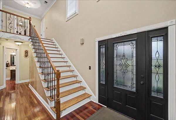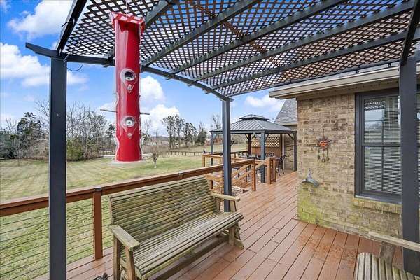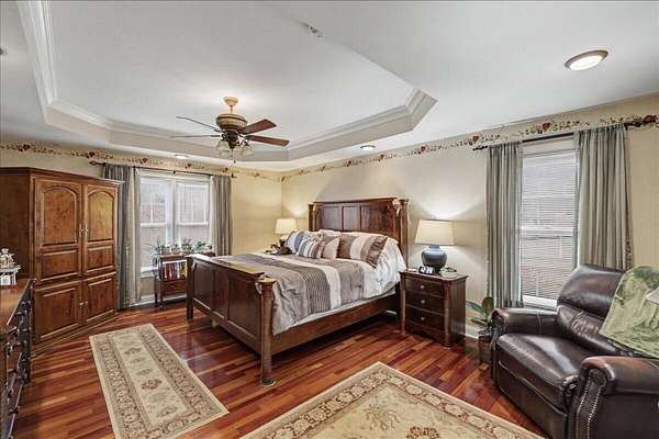 Welcome to this beautifully updated home in the highly desirable Golden Point Subdivision, a private and quiet community of just 18 homes tucked away on a cul-de-sac. Situated on a fully fenced 2-acre lot, this property offers the perfect blend of privacy, space and modern updates. With nearly 4000 Square feet, this home features 4 bedrooms, 3.5 baths, Brazilian cherry hardwood floors and carpet in the upstairs bedrooms and basement. This spacious layout includes a first floor primary bedroom ensuite with tray ceiling, jetted tub, separate shower, and an oversized walk-in closet. The kitchen offers oak cabinetry, Whirlpool appliances, a bayed eating area and a new double convection oven and microwave (2024). The living room showcases a cozy gas fireplace (propane tank filled in 2026) , while the dining room features a tray ceiling for added elegance. Upstairs you'll find two bedrooms, a full bath, a large storage room, bonus/playroom with built-ins, and walk-in attic. The finished basement includes a large open family room, full bath, bedroom, office, and kitchenette area - ideal for quests or multi-generational living. Extensive updates in 2024 include a new roof, gutters, downspouts, fascia, siding, and Marvin aluminum-clad wood/fiberglass windows. Additional upgrades include new fencing with black coated wire and barn gates, pergola replacement with new wire railings and solar lights, freshly painted exterior doors and shutters, and a steel gazebo (2025). Major mechanical updates include dual HVAC systems (1 replaces in 2025, 1 replaced in 2021) and a new water heater (2025). Outdoor living shines with oversized decks, stained stairs, raised garden beds, cultivated blackberries, lush landscaping, and an oversized garden shed. A 65" TCL Smart TV remains in the family room. This meticulously maintained property offers space, updates and privacy - just minutes from Richmond and 3 miles from the Robert Martin Bypass. To make this property even better, there is a 2 car garage, a separate 1 car garage and a 1 car garage in the basement for gardening equipment. This is a rare opportunity you don't want to miss!