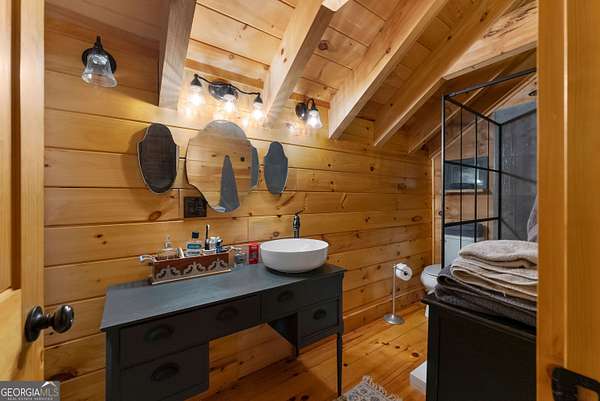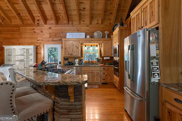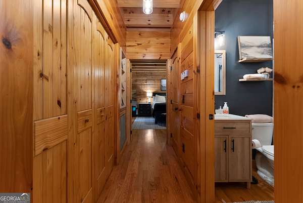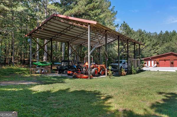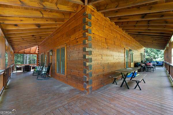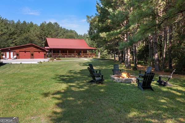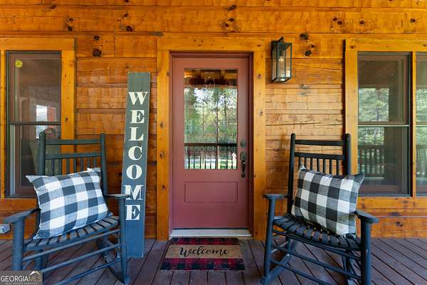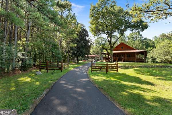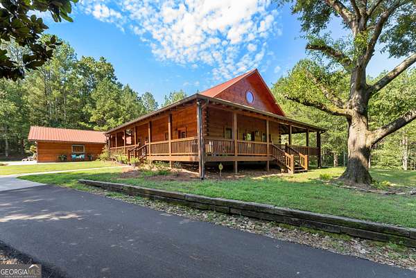 Discover the perfect blend of privacy, charm, and functionality in this custom-built log home, crafted with renowned Sisson logs. Nestled on over 16 acres with a mix of wooded areas, open fields, and a tranquil pond, this property is an ideal retreat to host an array of wildlife including deer, turkey, ducks and more while also remaining close to modern conveniences. The main residence showcases two master suites with the primary bathroom having heated tile flooring. A soaring loft overlooks the spacious open-concept living room. A whole-house water filtration system & enormous walk-in pantry are special additions to the already incredible kitchen space. Every detail in this home was thoughtfully designed to bring warmth and functionality together. The picture perfect Southern Living wrap around porch is the cherry on top. Adding to the appeal is a detached apartment complete with its own kitchen, living room, bedroom, and full bath-perfect for guests, extended family, or rental income. In addition to the 2 car garage, this property also features a massive 40x70 pole barn, providing endless possibilities for storage, hobbies, or workspace. Recent upgrades within the last two years include a brand-new septic system, freshly poured asphalt driveway, addition of the full apartment, two renovated bathrooms in the main residence, a new well pump, all new electrical wiring for garage and pole barn, and a tankless water heater. With these major improvements already completed, you can enjoy peace of mind knowing the costly updates have been taken care of-leaving you free to move in and start enjoying your new home right away.