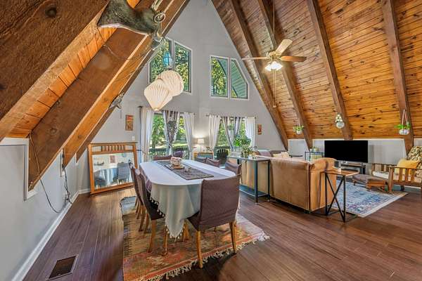 Peaceful retreat, just outside of Nashville! This charming A Frame is situated on 5 wooded acres just a little over 30 minutes from the city. Gorgeous wood cathedral ceilings and a wall of windows make this treehouse special. Step through the glass doors in the living room to a spacious deck with wooded views. Across the street is the Cheatham County Wildlife Management area which has over 20 thousand acres of ATV and walking trails. Though the property feels remote, it is less than a 10 minute drive to the shops and restaurants in downtown Ashland City. The full basement provides ample storage space, and has a single garage door for parking. Roof is 4 years old. Septic is perked for 2 bedrooms, but the house does have an office that can be used as a flex space. Live here year round, or use as a weekend getaway just outside of the city. Potential to use as an STR (short Term Rental) as well! Please see virtual slide show for more pix