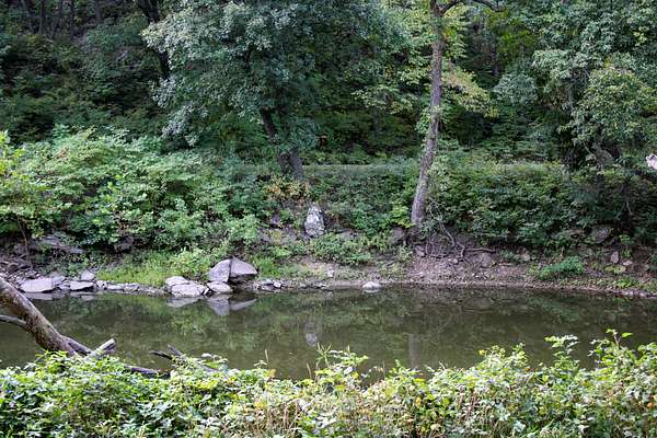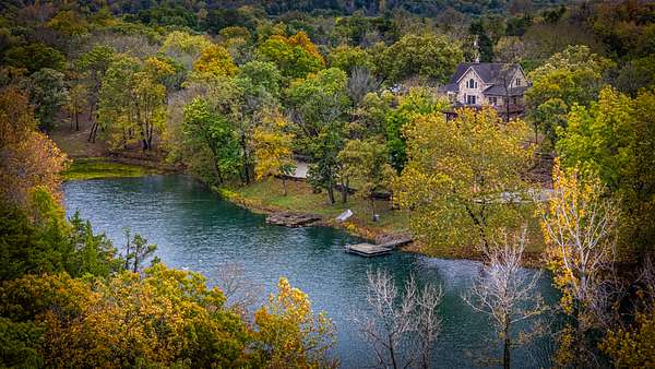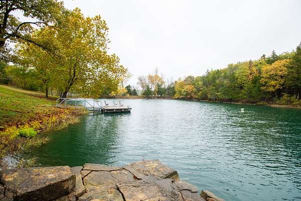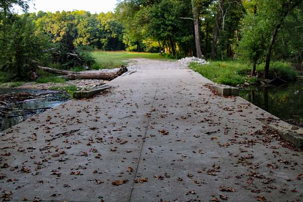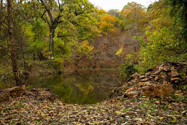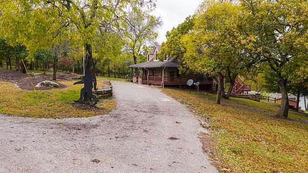 Stretching across a landscape of heavy timber and open meadows, the land features over one mile of Cedar Creek winding through the property, known for its excellent fishing and scenic beauty. A 2.5-acre pond reaching depths of up to 20 feet is stocked with bass, crappie, bluegill, and channel catfish. The pond includes a rock dock, concrete paver dock, boat ramp area, and even a water trampoline for summer fun. Multiple food plots are scattered throughout the property, supporting abundant populations of whitetail deer, turkey, and ducks. The terrain is marked by dramatic topography changes that enhance both habitat and views, while an established, well-maintained trail system allows easy access throughout the property. A heavy-duty bridge crosses Cedar Creek, and the gated private access road at the end of a dead-end lane ensures complete seclusion.