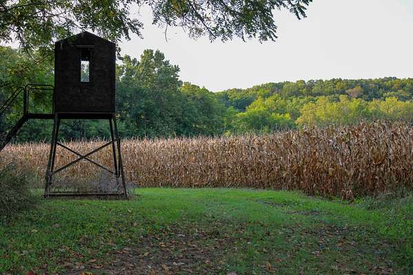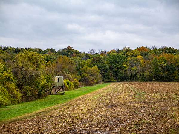 The property is fully set up for serious hunters, featuring five two-person tree stand sets, two enclosed elevated blinds, and several strategic food plots positioned along natural travel corridors. The combination of thick cover, water, crops, and elevation changes makes this property one of the finest turnkey hunting setups in eastern Kansas.