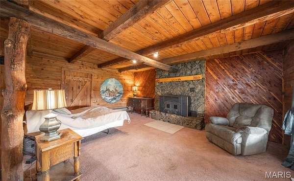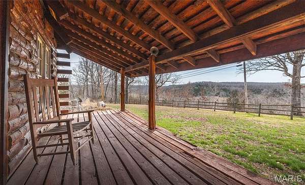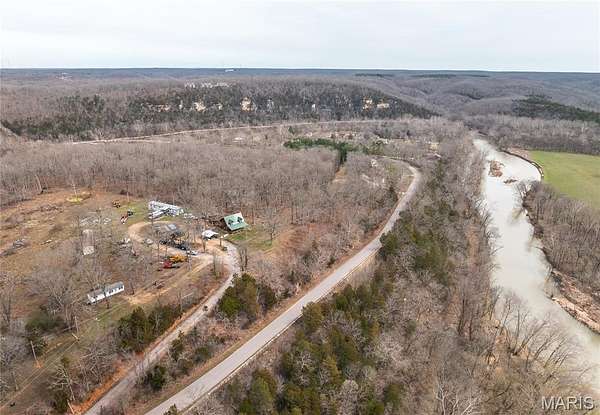 The "Rustic Retreat! Escape to your own private sanctuary in Devils Elbow! This stunning 2-bedroom log cabin is perched on 6.4 sprawling acres, offering breathtaking, panoramic year-round views of the Big Piney River. Inside, you'll find a cozy floor-to-case stone fireplace perfect for chilly Missouri evenings. With a metal roof, 2-car carport, and a private in-ground pool in doors, this property perfectly balances rustic charm with modern convenience. Whether you're looking for a permanent residence or a weekend getaway, this one-of-a-kind cabin offers the peace and privacy you've been searching for. All three mobile homes will convey with the property and the two storage containers.