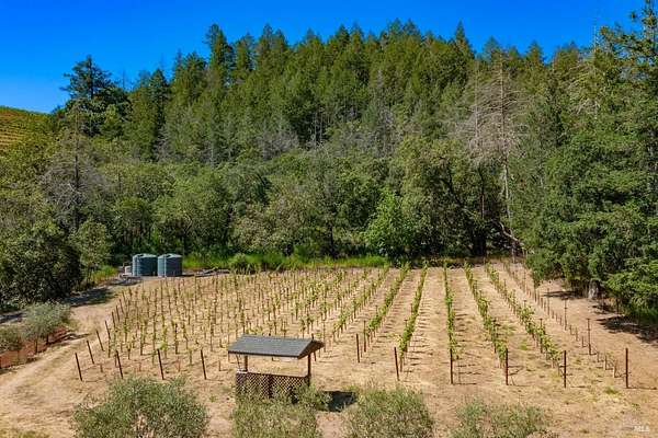 Beautiful tranquil expansive views, approximately 2.5 acres of Diamond Mountain AVA vineyard, close to downtown Calistoga, solid water and storage and a large 2 bedroom, 2.5 bathroom home used originally as a family home then as a place for guests or interns. Home is well maintained, but original to its building era. The basement houses a temperature controlled room for wine storage, and the garage contains a flex space which can be used as a home office or art studio. The end user could use as is, remodel or build their dream home. The 2.5+ acres of predominately Cabernet Sauvignon vines has been a prized part of the owner's wine portfolio. Come sit on their deck and look over the valley to understand the peace this property brings you.