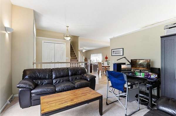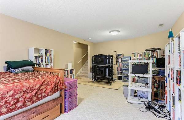 Upstairs, the primary suite features a private bath with a separate tub and shower, while two additional bedrooms share a full bath. The lower-level family room offers extra space for relaxation, recreation, or a home theater setup.
