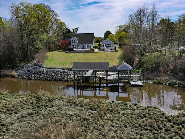 Est $5,208/moPrivate, Deep waterfront property, 2500 sq. ft. house on 2.1 acres on Brewers Creek off James River with easy access to Chesapeake Bay, dining, & shopping. 2 covered boatlifts w/ water, electric, and bulkheaded. Over 1500 sq. ft. of deck with hot tub, 2 outdoor kitchens, extensive hardscaping, lighting throughout, and fountains. Backup gas powered whole house generator. 2-car attached garage, & an oversized 4-car detached garage with high ceilings and a 1200 sq. ft. (original home) to be used as an In-Law suite, Guest House, or apartment with 3br, 2-story building. 2-stall barn. The main house has a dehumidifier system underneath the house with a digital display seen in the attached garage.
