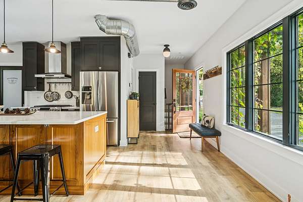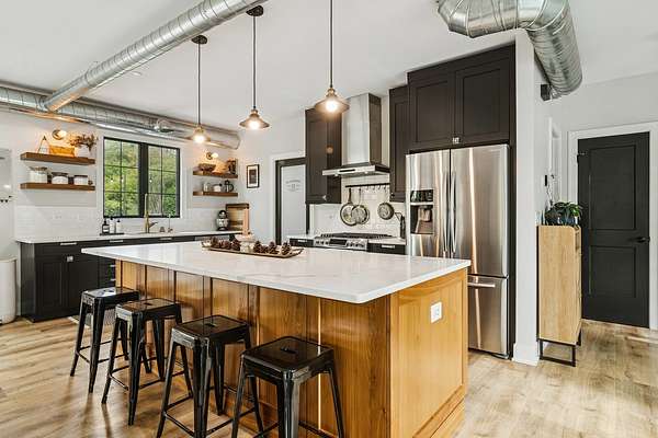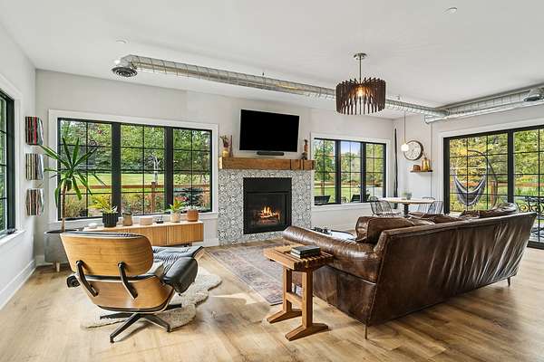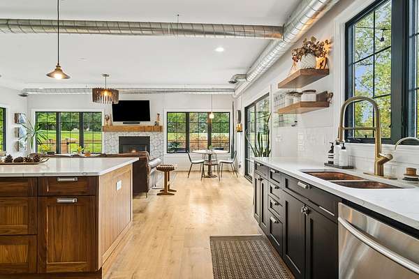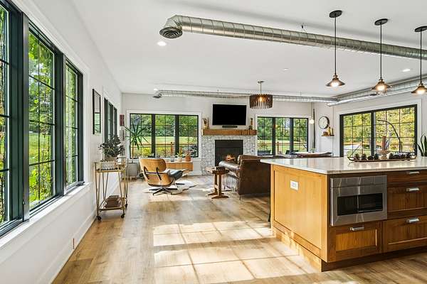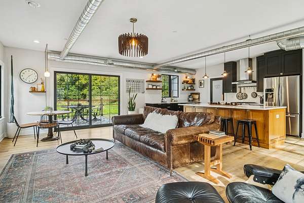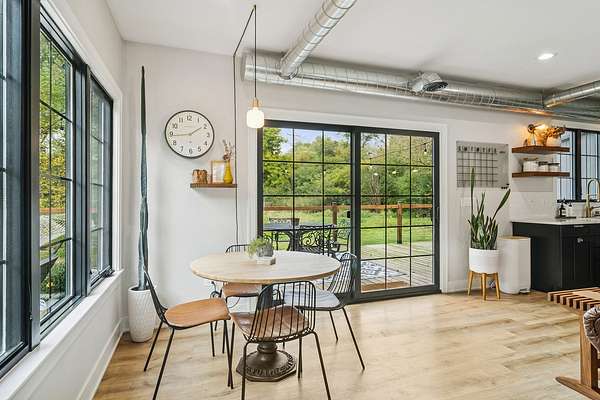 One-of-a-Kind Modern Industrial Home on 1.9 Acres in Barrington, Illinois! Where history meets modern design, this remarkable Barrington residence tells a story of vision, creativity, and transformation. Once a vintage barn and upholsterer's workshop, the property was completely reimagined through a collaboration between its current owners and ALA Architects & Planners. Finished in 2019 and thoughtfully expanded in 2021, the result is a masterful fusion of industrial heritage, refined contemporary design, and timeless character. Set on nearly two picturesque acres in the heart of Barrington's Village, this home offers the rare harmony of city convenience and country tranquility. Inside, expansive Jeld-Wen windows fill the space with natural light, highlighting exposed beams, soaring ceilings, and wide-plank white oak flooring that pay homage to its original form while exuding modern sophistication. At the heart of the home lies a chef-inspired kitchen designed for both everyday living and effortless entertaining. Top-of-the-line appliances, an oversized quartz island, custom cabinetry, a tiled backsplash, and open shelving create a perfect blend of style and function. Thoughtful details abound, including a dedicated dog bath in the laundry/mudroom-a pet lover's dream. The open main level flows seamlessly for gathering and connection, while upstairs, the spacious primary suite serves as a serene retreat. Its spa-inspired bath features dual vanities, a classic clawfoot tub, a frameless glass shower, and a walk-in closet with custom organization. Two additional bedrooms and a full bath complete the second floor, while the light-filled third level offers endless flexibility-ideal for a home office, studio, guest suite, or creative space. Outdoors, the property is a true sanctuary. Professionally landscaped grounds include a wraparound deck, fire pit, and lush perennial gardens framed by mature trees. Every vantage point invites you to take in the western sky-from glowing sunsets to moonlit evenings. In winter, the gently sloping "Currier & Ives" sledding hill offers a charming touch of nostalgia, while the serene water views create year-round tranquility. Located in the award-winning Barrington School District and within walking distance of Metra, boutique shopping, coffeehouses, and Village events, this residence embodies the best of Barrington living. It's a home that feels both refined and welcoming-a rare blend of architectural artistry, warmth, and everyday comfort. A truly one-of-a-kind opportunity to own a piece of reimagined history, where industrial charm meets modern luxury in the heart of Barrington!
