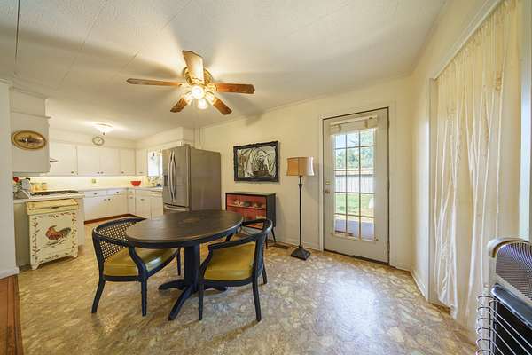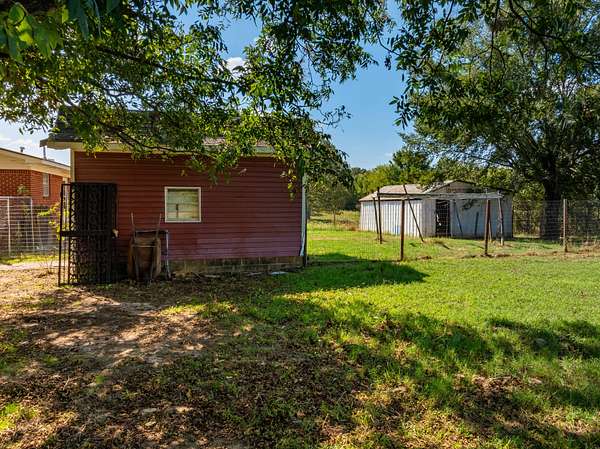 Outside is where this place really shines: a fully fenced backyard for pets, a barn with dirt floor (great for a horse or small livestock), a storage building for tools, and a storm shelter for peace of mind.
