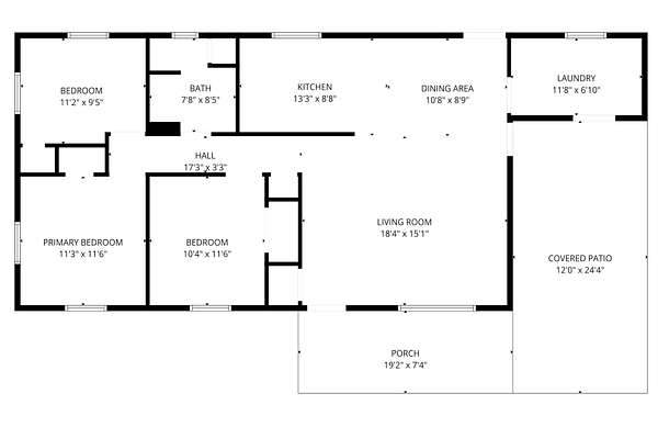 3 BR / 1 BA o ~1,200 +/- sq ft o 2 +/- acres