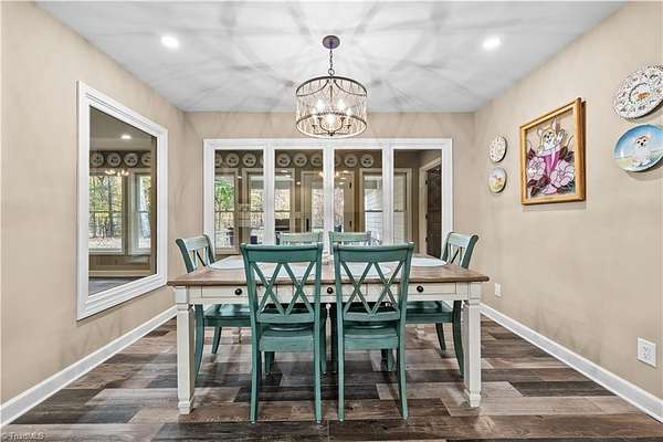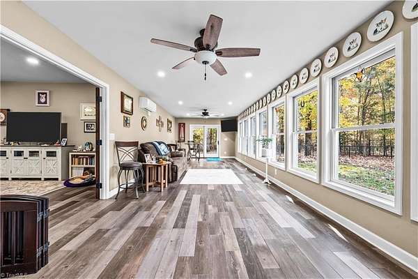 Beautifully designed custom home boasting generous living spaces, including a bright sunroom and an impressive great room ideal for gatherings. Open-concept kitchen showcasing an expansive 8-foot granite island with pop-up electric outlets and USB charging ports. Reclaimed wood style Porcelain Tile Flooring Throughout Main living areas. Each Bedroom features plush new carpeting. Split-bedroom floor plan with a secondary bedroom ideal for a mother-in-law suite, plus an additional office area. Primary Bedroom features His & Her Walk in closets & Tray Ceiling. Three covered Patios & Fenced in area in the back. Large 56X40 Detached Wired Workshop/Garage with concrete Flooring. Area wired for your camper or RV. Additional walk up unfinished storage in attic. Enjoy 12+ Acres of peaceful country living while remaining just minutes from the NC Zoo, downtown shopping, local restaurants and attractions. (Tax Records listed at 13Acres-includes easement right of way)