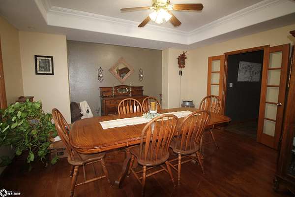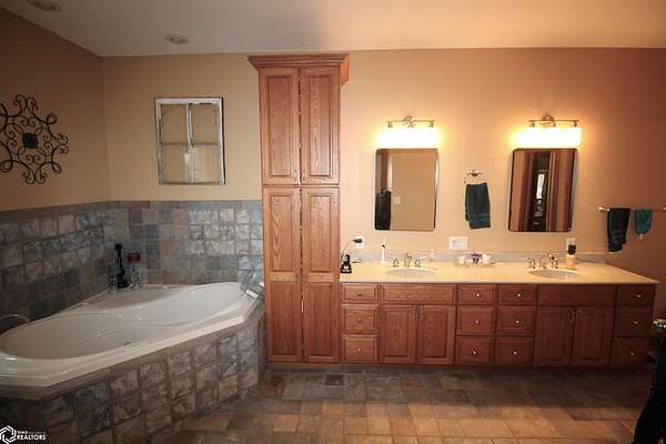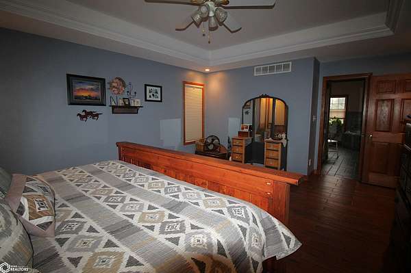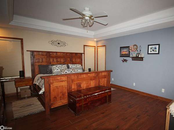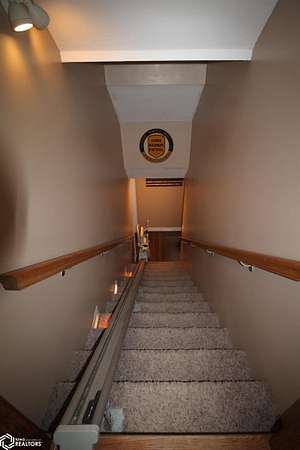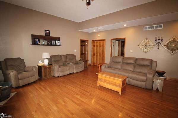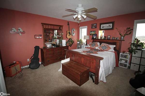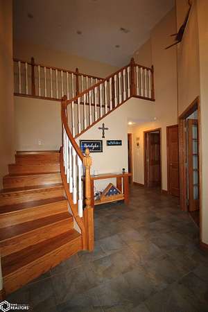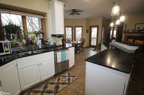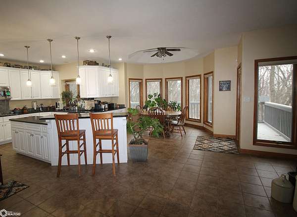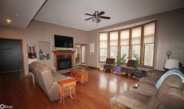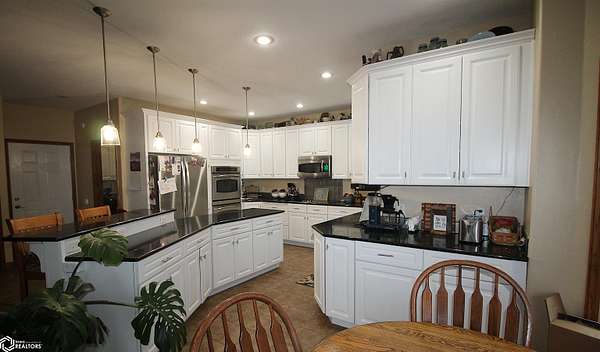 This custom-built home leaves little to be desired, sitting on 4.5 acres just on the edge of Clarinda! There is a total of 6 bedrooms in this beautiful home, the master bedroom is located on the first floor with a large walk-in closet, a master bathroom w/dual vanity's, a soaker tub, & a walk-in tile shower. The rest of the main floor features a powder room, a large office, a formal dining room, a large living room with a two-way fireplace & large window to enjoy the gorgeous view! The kitchen has beautiful white cabinetry with dark granite countertops & a cozy breakfast nook that opens up to the back deck. The laundry room is located on the main floor near the entrance from the 3-car garage. Located on the second floor, two of bedrooms share a jack & jill bath w/their own vanity's & the 3rd has an attached 3/4 bath. The walk-out basement features two more bedrooms & a 3/4 bath. This home has geothermal heat & a central vac system, & a brand new roof in 2025 just to name of few of its amazing features!