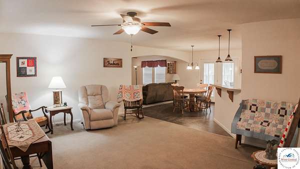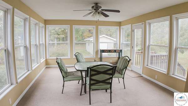 Welcome to your very own 3-acre sanctuary in Butterfield Trail Estates, just minutes from both Truman Lake and Lake of the Ozarks. This beautifully updated 4-bedroom, 2-bathroom home offers the perfect blend of comfort and style, featuring an airy open floor plan ideal for gatherings and relaxation alike. Step into a sunlit living room that seamlessly flows into a spacious dining area and a dream kitchen with abundant cabinetry, sleek black appliances, a breakfast bar for morning coffee, and a huge walk-in pantry/laundry room. The split-bedroom layout ensures privacy for the primary suite, which boasts a generous walk-in closet, luxurious soaking tub, double vanity, and independent step-in shower--your personal retreat at day's end. Three additional bedrooms share a large, full bath perfect for family or guests. Entertain or unwind in the expansive sunroom, a show-stopping addition flooded with natural light and panoramic views of the manicured yard and trees beyond. Step outside to enjoy beautifully landscaped grounds, a matching storage shed surrounded by vibrant flower beds, and two incredible metal buildings for all your hobbies and storage needs. The 40x30 garage features dual overhead doors, full electrical, and a heated/cooled room for the well pressure tank, while the 40x24 RV garage has soaring ceilings, three windows, and a climate-controlled space for deep freezers or extra storage. Packed with upgrades including a high-efficiency heat pump, smart security system, attic fan, three outdoor water spigots, and a septic system, this home truly has it all. Don't miss your chance to own this rare and relaxing retreat--schedule your tour today and discover a lifestyle of peace, privacy, and endless possibilities!