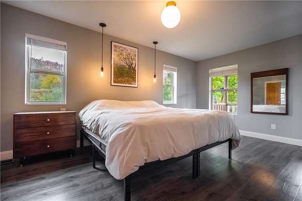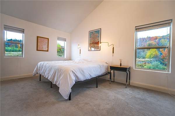 Spacious, south-facing Catskills chalet with mountain views, and modern amenities. This home was built with comfort and convenience in mind. The main level has an open floorplan living, dining and kitchen with a high vaulted ceiling, a giant wall of south-facing windows, and a wrap-around porch that looks out over the pond to a view of the mountains. The main level and upper level have large bedrooms with ensuite baths, and the lower level has the third bedroom with its own living room, entertainment area and opens up to a patio near the pond. The home has central heating and AC remotely controlled by a Nest thermostat, and a new Harman pellet stove. It also has a backup generator to keep the house running comfortably if all weather, a Ring camera security system for remote monitoring, and a brightly lit two-car garage. The kitchen has been recently renovated and includes a Subzero fridge and Bosch dishwasher. The property features a large meadow that is mowed with walking trails, and is nestled in a small, friendly community of properties that were once a single dairy farm. This beloved home is already a successful Airbnb with year-round appeal. Contact agent for a detailed list of renovations. Located on a town-maintained road in the popular town of Andes NY, equally close to Margaretville NY for groceries and shops. Just 23 mins drive from skiing at Belleayre Mountain, and just 2.5 hours from the GW bridge. Schedule your showing today!