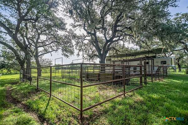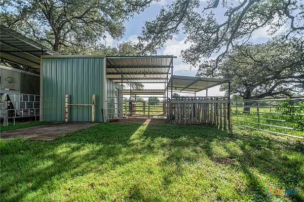 Escape to your own private sanctuary on this exceptional 25+/- acre ranchette featuring a beautifully designed 1,820 sq ft barndominium nestled among majestic mature oak trees. Built only 7 yrs. ago, this unique property offers the perfect blend of modern comfort & rustic charm, ideal for those seeking a peaceful country lifestyle. The thoughtfully designed barndo boasts 2 spacious bedrooms & 2 full baths. Custom touches elevate this rustic home to elegant living, featuring recessed lighting throughout, stunning granite countertops, & a distinctive Talavera sink in the guest bathroom paired with Talavera tiles on the stairs leading to the upstairs bedroom. The living room showcases a beautiful wood ceiling that adds warmth & character, creating a striking focal point that perfectly complements the rustic elegance throughout. Thoughtful design includes abundant storage throughout the home, ensuring everything has its place. The open concept design maximizes every square ft creating a warm & inviting atmosphere. The front & back porches offer stunning views of cattle grazing peacefully or horses meandering through the lush pastures. A substantial 850 sq. ft lean-to provides endless possibilities for hobbyists, craftsmen, or those needing extra storage & workspace. The shop area can easily be converted to additional living space if desired offering potential for expansion or multigenerational living arrangements. 25+/- pristine acres of Texas countryside featuring mature oak trees creating a park-like setting. Working pens w/ chute enable efficient cattle handling. A 4-stall horse barn provides excellent equestrian facilities while maintaining rustic charm. Valuable road frontage on CR 125 and HWY 111 ensures excellent accessibility & future development potential. This remarkable property offers turn-key agricultural operations w/ elegant barndo living- perfect for cattle ranching, horse operations, full-time residence or weekend retreat. Call today!