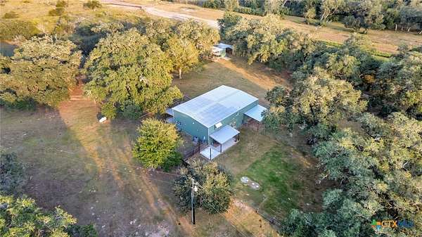 This exceptional 14+/- acre ranchette features a beautifully designed 1,820 sq ft barndominium nestled among majestic mature oak trees. Built only 7 yrs. ago, this unique property offers the perfect blend of modern comfort & rustic charm, ideal for those seeking a peaceful country lifestyle. The thoughtfully designed barndo boasts 2 spacious bedrooms & 2 full baths. The open concept design maximizes every square ft creating a warm & inviting atmosphere. A substantial 850 sq. ft lean-to provides endless possibilities for hobbyists, craftsmen, or those needing extra storage & workspace. The shop area can easily be converted to additional living space if desired. Working pens w/ chute enable efficient cattle handling. A 4-stall horse barn provides excellent equestrian facilities. This remarkable property offers turn-key agricultural operations w/ elegant barndo living. Call today!