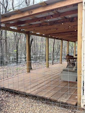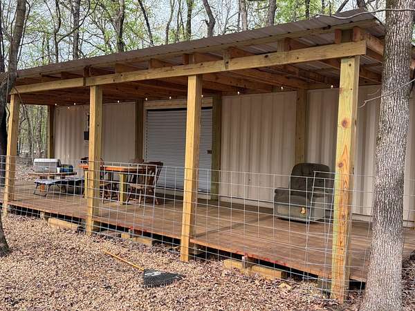 Escape to your own private paradise with this exceptional 80-acre property that feels like a state park. Perfect for a hunting lease, private getaway, or unique off-grid living experience, this one-of-a-kind retreat features a blend of natural beauty and versatile accommodations. Property Highlights: • 80 Acres Total o 40 Acres of Mature Wooded Hunting Land - Ideal for deer, turkey, and other wildlife. o 40 Acres of Cleared Land for Living and Recreation - Thoughtfully developed with multiple lodging options and infrastructure. • Lodging & Amenities o Metal Shop with Living Quarters - Includes 1 bedroom, 1 bathroom, kitchen/living space - great as a primary residence or hunting camp headquarters. o Converted Bus & Conex Living Quarters - Both offer additional sleeping/living areas, and the Conex features a custom-built deck. o Rustic Cabin with Deck - Perfect for guests or a quiet escape with a view. o Airstream Camper - Classic charm with practical function. o 2 RV Hookups - Invite guests or park your own rigs. o Buried Storm Shelter - Peace of mind during storm season. • Private Lake o Large, spring-fed private lake with dam - great for fishing, kayaking, or simply enjoying the serene views. o Road system throughout the property provides easy access to all areas, including around the lake. Additional Features: • Secluded and private, yet well-laid out with cleared pathways and internal roads • Ideal for outdoor enthusiasts, nature lovers, and those seeking peace and quiet • Could also serve as a corporate retreat, glamping destination, or investment property