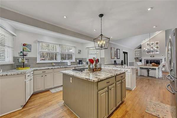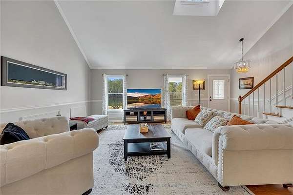 Welcome home to this charming raised ranch situated on 4 private acres with a peaceful lake view, offering the perfect blend of space, serenity, and functionality. A welcoming front porch spans the front of the home, creating an inviting place to relax and take in the surrounding natural beauty. The main living level features a bright, open layout ideal for everyday living and entertaining. The updated kitchen is well positioned at the heart of the home, offering ample cabinetry and workspace with an oversize island and flows seamlessly into the main living areas of the home. The versatile dining room is filled with natural light and features custom bookcases built around the beautiful brick fireplace, which sets the tone of the home. Overlooking the main living space is a versatile loft, perfect for a home office, reading nook, play area or lounge space with storage. This elevated feature adds interest and additional living space all while providing flexible functionality. The primary suite is a true retreat, highlighted by a newly renovated master bath with modern finishes, double vanities, tile shower, stand alone tub truly creating a spa-like experience. Two additional well-sized bedrooms are thoughtfully arranged for comfort and functionality with a shared full bath. The lower level offers versatile unfinished space perfect for a recreation room or storage along with an attached garage for convenient parking and access. Step outside to enjoy your own in-ground saltwater pool, ideal for entertaining or relax in the sunroom overlooking your private backyard. This home has been meticulously maintained with recent updates including refinishing of floors, fresh paint, and brand new roof. With expansive acreage, lake views, outdoor amenities, and classic charm, this property offers a rare opportunity to enjoy privacy, comfort, and scenic living while remaining convenient to nearby amenities.
