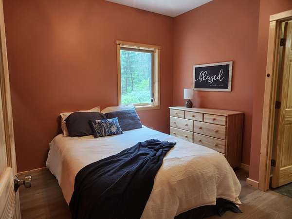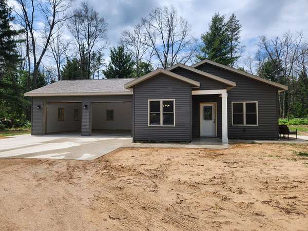 Custom Built! This exquisite new construction home offers an open floor plan with 2 BR and 2 Baths. AND all the thoughtful details including Quartz countertops, soft close drawers, with natural light flooding the interior through the many windows. The property also boasts a spacious two-stall, finished garage with plenty of room for storage and/or a work area. Nestled on 2.65 acres and ideally situated across from hundreds of acres of state land for hunting and trails just down the road. More you say? How about: AC, Under cabinet lighting, recessed lighting, poured approach to the garage, stamped concrete porch and walkway, large walk-in closet in primary BR, luxury vinyl flooring, quiet, private road, and so much more! 0% Down Options or LAND CONTRACT TERMS Available! Your Choice