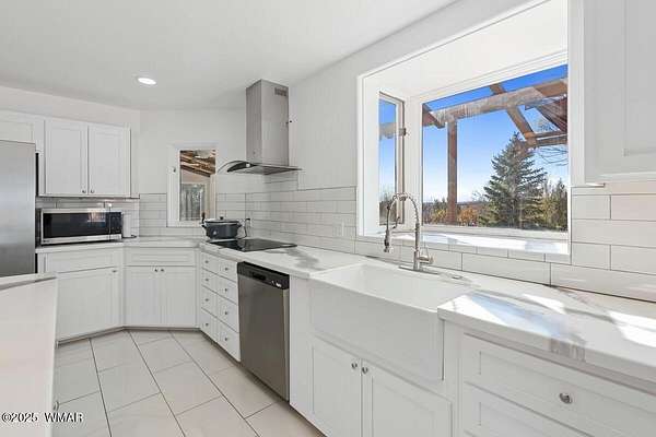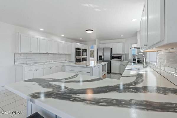 Set on 3.11 private acres, this updated 5-bed, 4.5-bath home offers over 6,500 sqft including a near-finished basement and income potential. Over $100K in upgrades-new kitchen, HVAC, paint, electrical, and plumbing. Basement includes a bar and framed out theatre room. Features a private well, septic, ventless W/D hookups, and detached 800-900 sqft garage with rental conversion plans, plus a shed and fruit orchard. A versatile Snowflake property with strong income and multi-use potential.