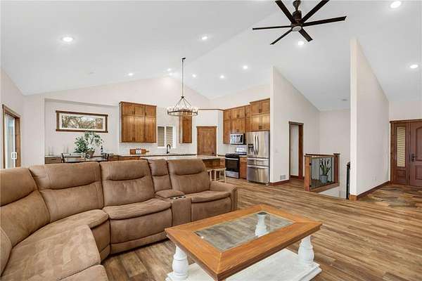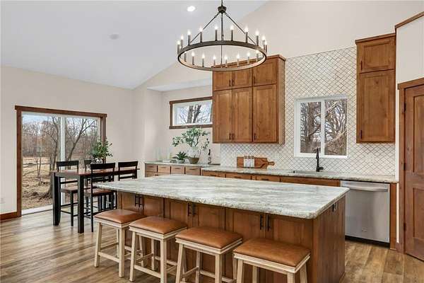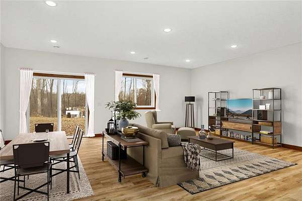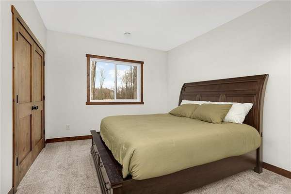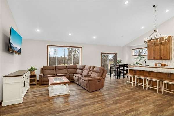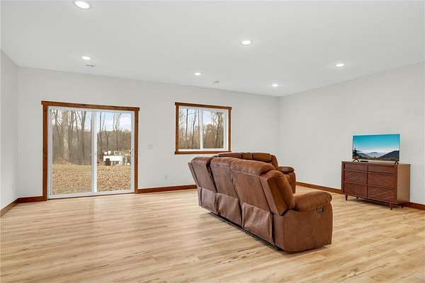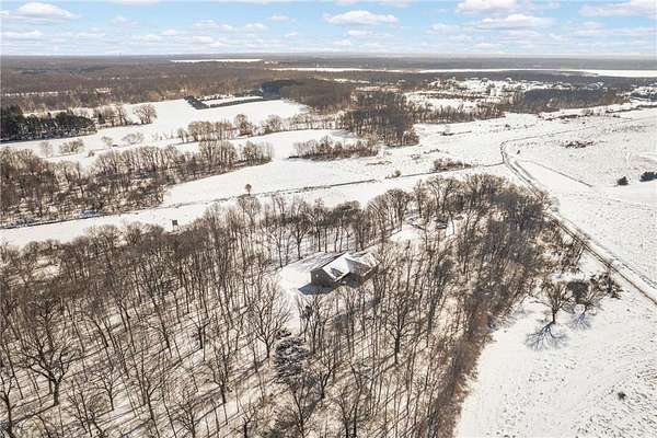 A custom-built 2024 one-story home on 30.18 private acres, dual-zoned Agriculture and Residential-Single Family. The land has three distinct zones: an open hay field at the front set up to feed horses and livestock, a dense tree border that hides the home completely from the road, and open tillable acreage through the middle — the historic potato field. Approximately 8 acres of private wooded trails run through the back of the property. The The main floor is open and bright with a 15ft vault, solid alder woodwork throughout The fully finished walkout lower level adds 1,731 sq ft with 9-ft ceilings, a massive 22x33 family room, fully plumbed wet bar, 2 bedrooms, full bath with tub/shower combo, and a dedicated laundry area — fully independent from the main floor. Oversized 4-stall heated garage with 9-ft doors, deep to accommodate full size trucks and trailers,hot/cold utility sink, and upper level storage. Outbuilding up to 9,000 sq ft permitted. Suitable for horses.