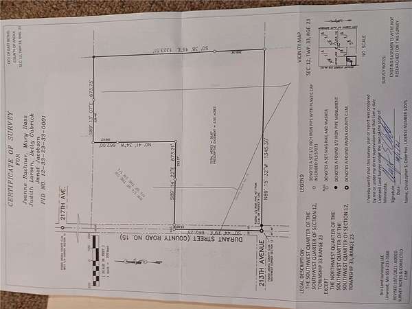 THE SW1/4 OF SW1/4 OF SEC 12 TWP 33 RGE 23, EX NW1/4 OF SD 1/4 1/4, EX RD, SUBJ TO EASE OF REC