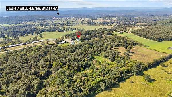 Step back in time with this charming 1909 farmhouse, thoughtfully updated for modern comfort while preserving its country character. Nestled on 18.08 acres less than 5 miles from the Ouachita National Forest, this home invites you to embrace a slower pace and the beauty of rural living. With 1,821 sq ft of heated living space, the home features 2 bedrooms, 2 full baths, and two spacious living areas. A newer addition brings a welcoming main living room and a generous master suite, along with upgrades including a metal roof, PEX plumbing, hot water heater, electrical, and a generator hookup for peace of mind. A concrete inground storm shelter adds another layer of security for weather. Outdoors, the property is ready for work and play. A new 30x30 metal shop with concrete floors and electricity provides the perfect space for projects, while a 50 & 30 amp RV hookup makes hosting easy. There's also a metal carport off the old carriage house, an 8'x10' chicken coop with fenced run, and two wells-one electric and one hand-pump. The land is sloping to gentle slopping to the north, mostly wooded, and full of natural beauty. A large, stocked pond offers a peaceful fishing spot, while fruit trees, a garden area, and open space give you room to grow your own food and enjoy a self-sufficient lifestyle. Wildlife is abundant, and with the Ouachita National Forest so close, outdoor adventure is always within reach. Whether you dream of a hobby farm, a retreat from the city, or simply a quiet place to call home, this property is a rare opportunity to own a piece of history surrounded by nature.
