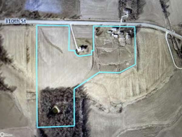 From Hwy 163 South of Oskaloosa, take 310th Street (Bussey Rd) West 1/2 mile. House and acreage sits to the south.