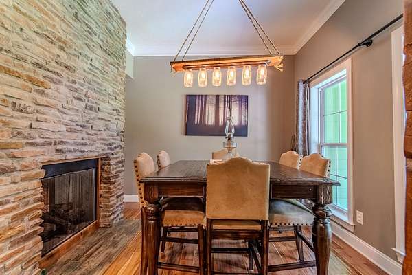 Est $2,571/moCraftsman style home with rustic flare! 3 bedrooms, 2.5 baths. This home features an office, dining area, eat-in kitchen, all appliances included, hardwood & tile flooring, soaking tub & separate shower in master, dual sided fireplace, covered porches, hot tub, shop, all on 3.91+/- acres. The shop has split unit, water, electricity, tankless water heater, propane. Daycare located 1/2 mile down the road. High speed internet. A beautiful setting among large mature trees. Minutes to Jackson, TN.