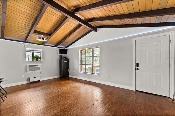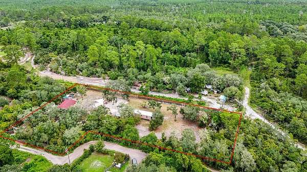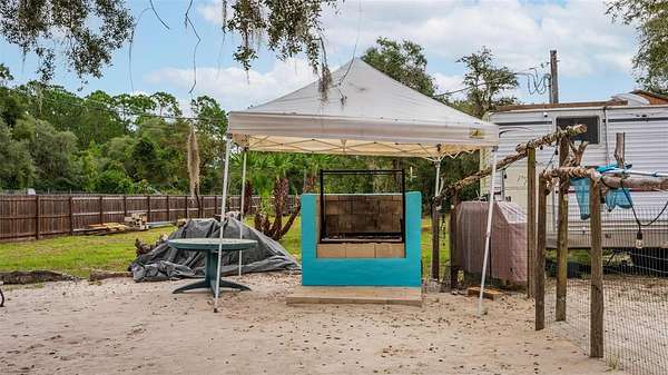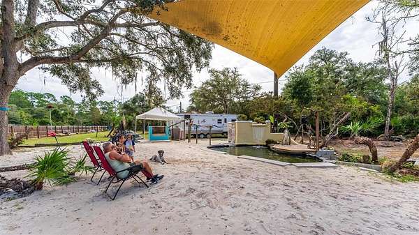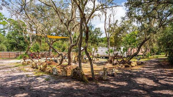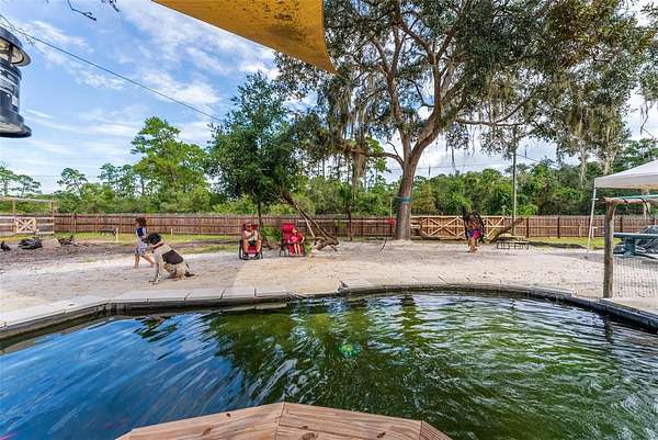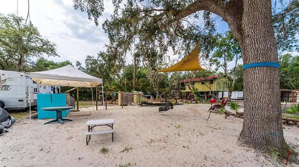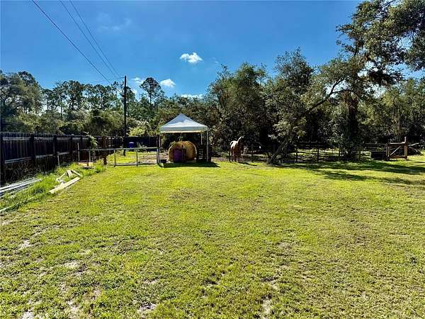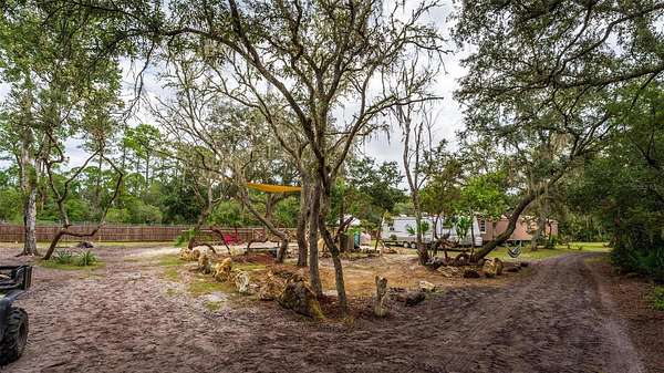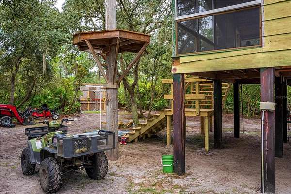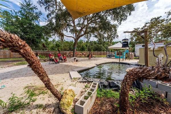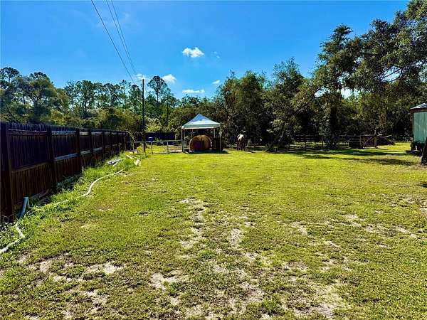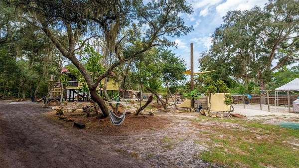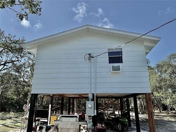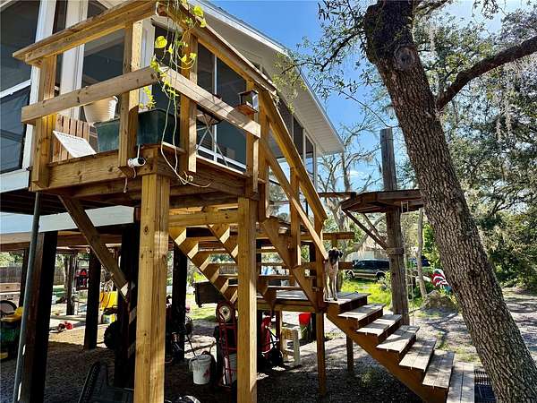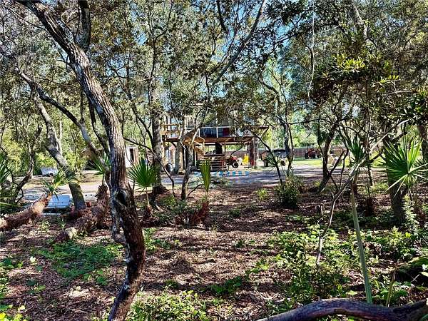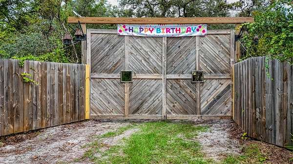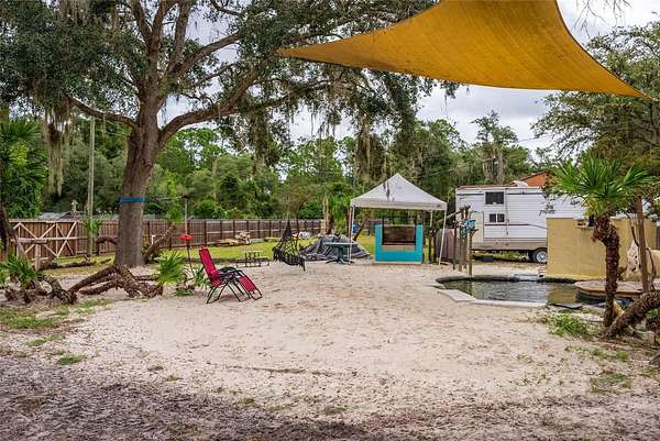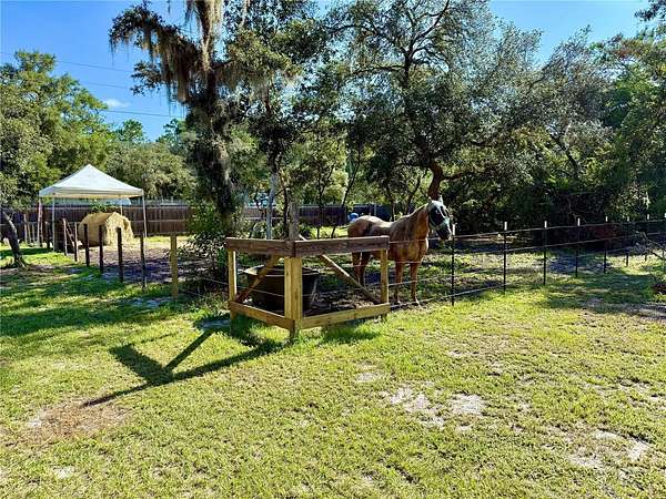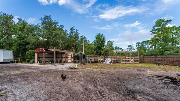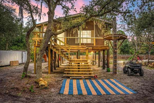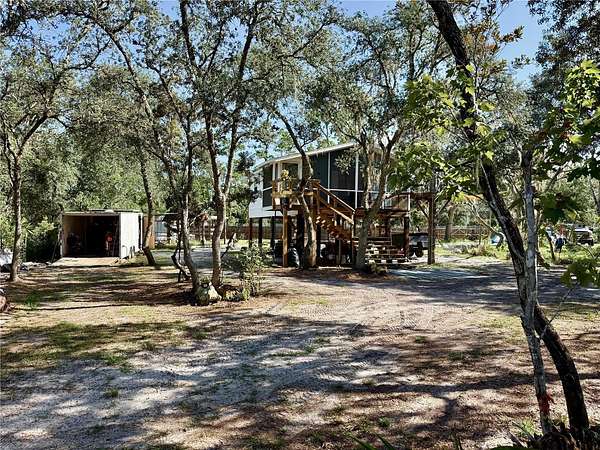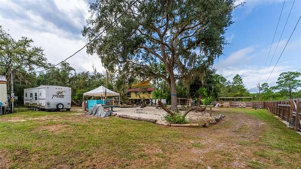 Are you searching for peace, quiet, and a personal retreat to call home -- or perhaps the ultimate little McRanch vacation getaway? This truly one-of-a-kind 1.24-acre paradise offers you that rare opportunity. Tucked deep in the heart of the forest, this property comes with more than just land and structures -- it comes with a lifestyle. Featuring a completely renovated. 1-bedroom, 1-bathroom stilt home with a brand-new roof in 2025, a 2-bedroom, 2-bathroom 1985 manufactured home currently used as storage and laundry there's space for everyone and then some. But where do we even begin? The seller will meet you at the corner of SE 207th Terrace and SE 182nd Ave Rd. to personally guide you in. Once you pass the "Game of Thrones" style automated gate flanked with citronella torches, you'll know you've arrived. The entire property is fully fenced, with 3"-5" of under-fencing for added security. As you enter, the stilt home stands proudly ahead, showcasing its brand-new grand staircase leading to a screened-in front porch. The property boasts updated 200-amp electrical service with two separate meters -- a 100-amp service at the manufactured home -- and features 2 RV hookups with 50-amp power and 4 septic connection points. Inside the stilt home, you'll find original real wood floors, a tankless electric water heater, dual A/C units and infrared heaters, keyless front entry, GFCI safety receptacles throughout, an 8 camera security system and the property-wide Wi-Fi system. That same high-speed internet powers music, lights, a hi-end projector, and even the waterfall at the pond. Fiber optics have already been run and are expected to be connected soon. Outside, things get even more exciting. Exit the stilt home and ascend the second story "crane's roost" to zipline down to your own private 3 to 5 foot-deep freshwater swimming koi pond and 750,000 lbs of imported sand beach. The pond is low cost of maintenance, well-fed, filtered, and crystal clear -- ideal for swimming or just relaxing beneath the waterfall. It even serves as a secondary plumbed in water source for the whole property (for in the event that the well does not work) as well as second fire hose hookup, with a 2' firehose located in the well house. The koi (30-35 of them!) help keep the water naturally clean and don't mind sharing the space with swimmers. Head over to the Argentinian-style wood-fired grill and cook up a ribeye with real oak logs. The property runs on well water and includes an iron eater system with two carbon filters and one resin filter. Need space for your hobbies or farm life? There's a chicken coop, a double 12x12 horse stall, separate fenced in horse paddock, beachside hitching post, and an automated back gate with a concrete footer (needs electrical run), and an unfinished meat-processing station ready for concrete -- the water and drain lines are already in. An outdoor bathroom area adds more charm with a septic connected real toilet, dual shower heads, and a pebble floor lit by waterproof LED lighting. Forgot your soap? A soap plant growing right inside the shower. Whether you're riding out from the back gate on horseback, exploring the land on an ATV, or preparing for a day of outdoor adventure, this property delivers. You can watch everything come to life on video at https://youtu.be/zTCFfv3849w. Call today for your private tour and step into a lifestyle that combines off-grid serenity with modern luxury in a way you truly have to see to believe