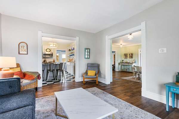 Charming and spacious rehabbed farmhouse ideally located just minutes from Saugatuck, South Haven, and nearby Lake Michigan beaches. Set on a picturesque property with mature trees, a historic barn, and no close neighbors, this home offers a peaceful retreat in the heart of Southwest Michigan--just moments from local wineries, cideries, orchards, and antique shops. Inside, you'll find a bright, airy kitchen with a cozy breakfast nook, along with formal living and dining spaces and a large family room--perfect for entertaining or relaxing. The home features 4 spacious bedrooms, each with its own ensuite bathroom, providing comfort and privacy for guests. The primary suite includes additional flexible sleeping space. Enjoy the expansive backyard with a patio, fire pit, and plenty of room for outdoor activities, ideal for gatherings or quiet evenings. Currently used as a short-term rental this is the perfect opportunity for a full-time residence, vacation home, or rental in a highly desirable location.
