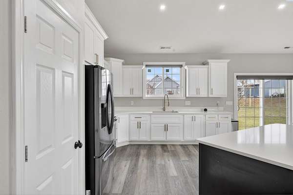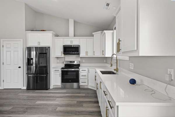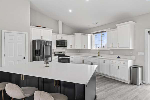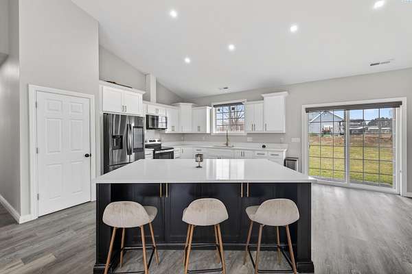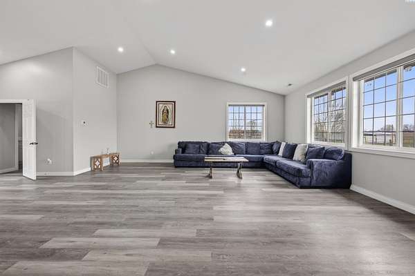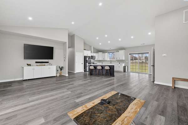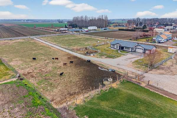 Spacious country living on nearly five acres! This 3-bedroom, 2.5 bath home offers the perfect blend of comfort, functionality, and open space. Featuring a desirable open-concept layout, the kitchen flows seamlessly into the living room, creating an inviting space ideal for entertaining and everyday living. Vaulted ceilings and large windows provide abundant natural light, enhancing the bright and airy feel throughout the home. The kitchen offers island seating, making it perfect for casual dining, meal prep, and gathering with family and guests. The primary suite includes a private bath and a walk-in closet, offering comfort and convenience. The property includes a three-car garage with ample room for vehicles, storage, or workspace. There is additional RV parking available on the side of the home, providing flexibility for recreational vehicles, trailers, or equipment. With nearly five acres of land, this property is well-suited for farming, livestock, gardening, or creating your own private retreat. Enjoy the freedom of rural living while still being just minutes away from town amenities. Whether you're looking for room to grow, space for animals, or simply more privacy, this property offers endless possibilities.