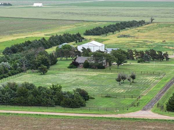 This beautiful country home sits right on the Scott/Finney County Line and boast a total of 40.49 acres of grass and pasture. The home has 4 bedrooms and 3 full bathrooms and the master bedroom has an en suite bathroom. Along with all that space you get a den/office space that has a pass through fireplace that you can enjoy from either the den/office or the living/dining room. Attached two car garage and full basement with living room and a very large pantry. Outside you will find a full perimeter fence! Metal post fence across the front and for the riding pen close to the house and next to the round top shed! Strand wire and barbed wire throughout the rest of the property! You will also notice all the gorgeous trees throughout this property, they provide that much needed wind break, and keep the house and property enjoyable on almost any Western KS day!! Around the property you will also find a Morton Building that has a bi fold door with concrete in the front 1/3 and dirt floor for the rest, an old grainery/tac room, chicken house, and round top shed which has a full concrete floor and a small room built into the side that is heated and insulated!! This is a one of a kind property for Western KS, the trees are already established, all the outbuildings for your toys and animals, and a home built to last! Both the Scott City and Garden City school district bus routes will run to this house to pick up kids, so you have two schools to choose from. You are also close enough to Garden you can get same day Walmart orders delivered to you!! Call Broker to schedule your showing today!