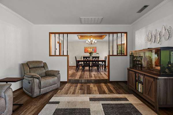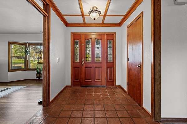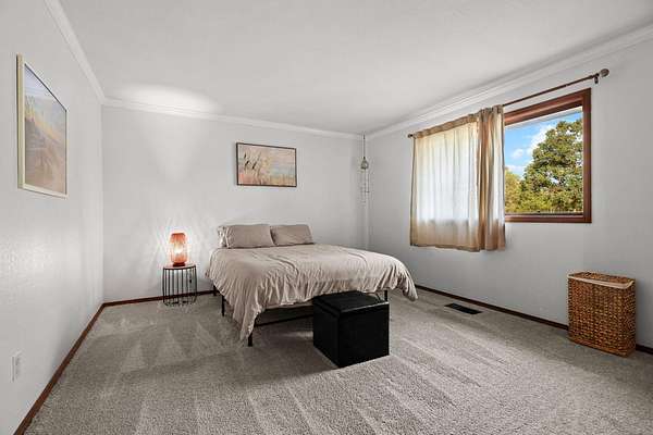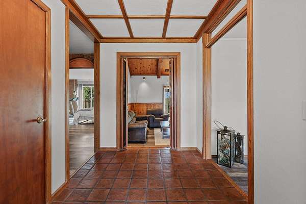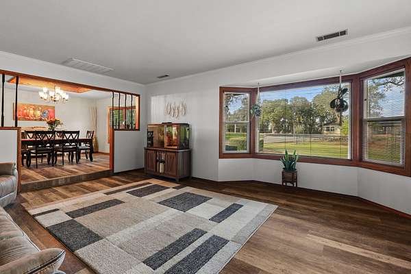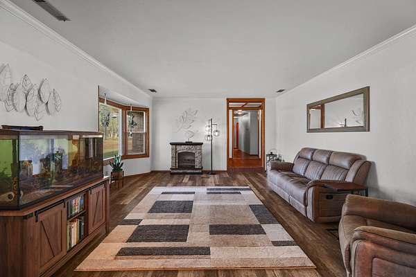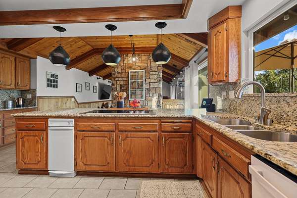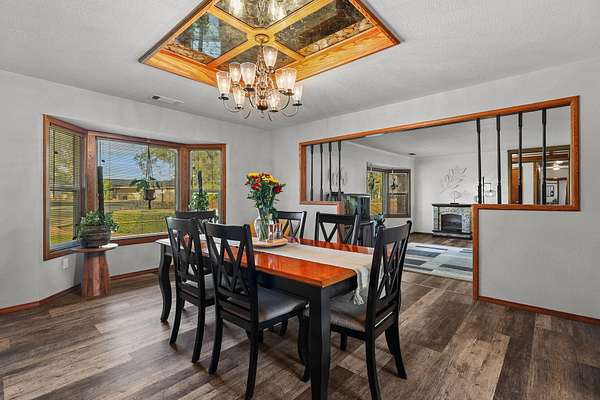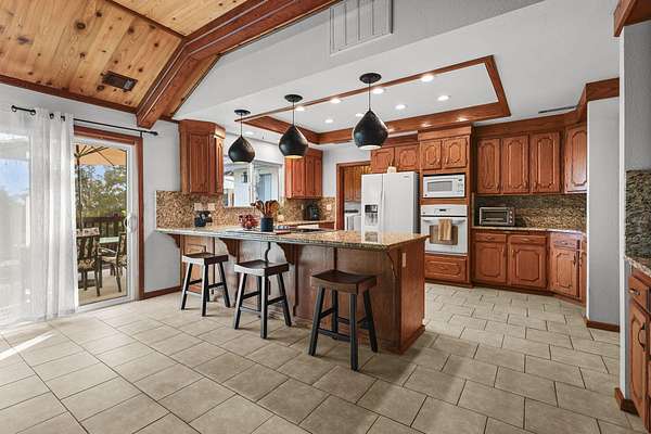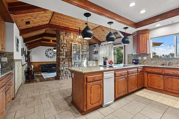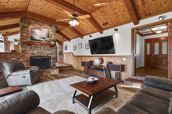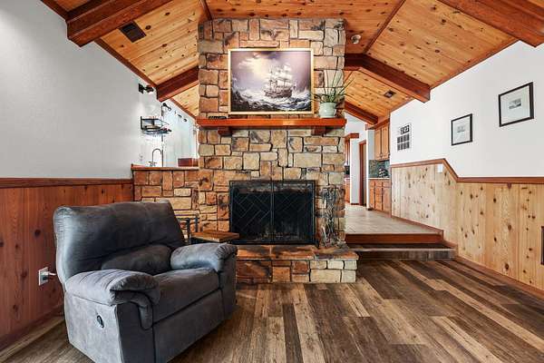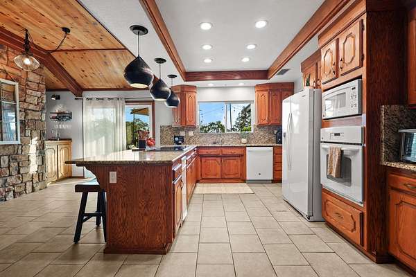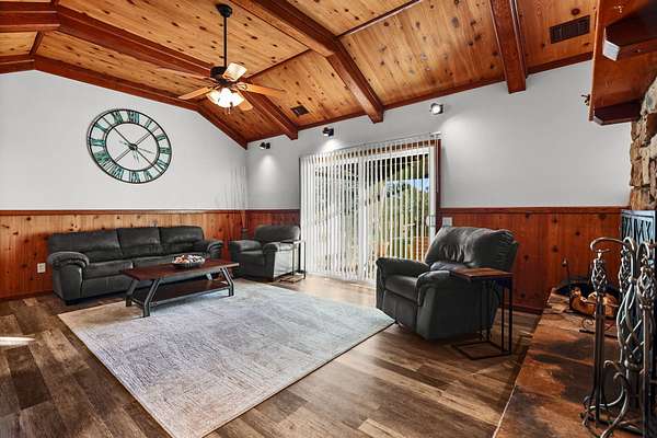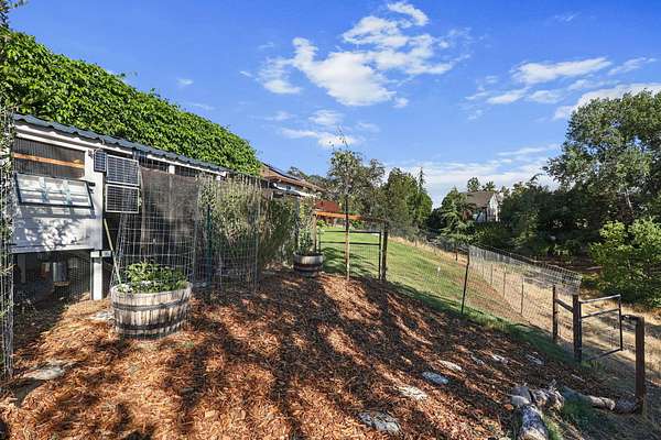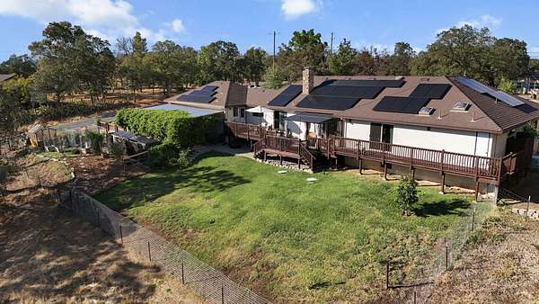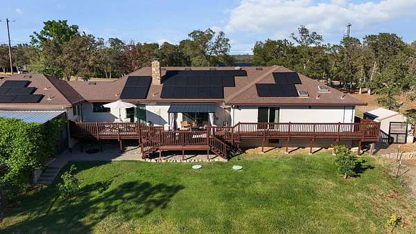 Beautifully maintained home on 2 Acres with Solar & New Roof! This well-designed and charming 2,800 sq ft home offers character and functionality throughout, featuring exposed vaulted wood ceilings and a impressive floor-to-ceiling stone fireplace. The spacious kitchen includes granite counters, an eating bar, and direct access to the formal dining area, pantry, and back deck--perfect for entertaining. The primary suite offers private deck access, a walk-in closet, and a luxurious bath with dual sinks, a jetted tub, and separate shower. Set on over 2 acres of manicured grounds with a circular driveway, fenced backyard, and plenty of parking for RVs or boats. Garden and chicken coop plus wildlife in the neighborhood! Recent upgrades include a brand-new roof and solar system, providing comfort and efficiency in one exceptional Red Bluff property in a desirable location!!