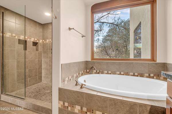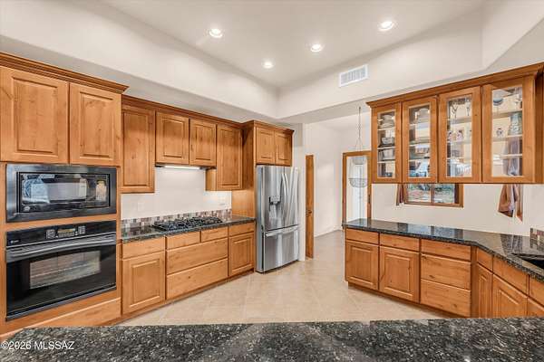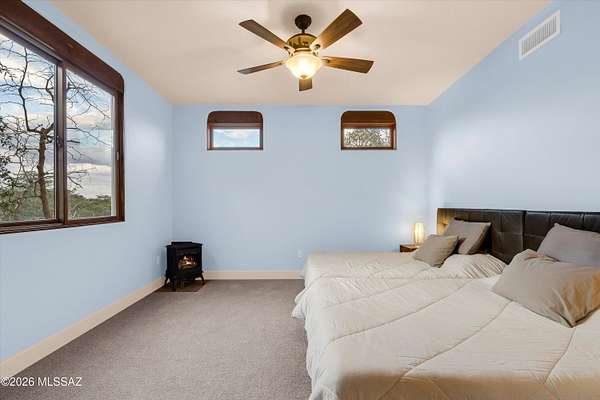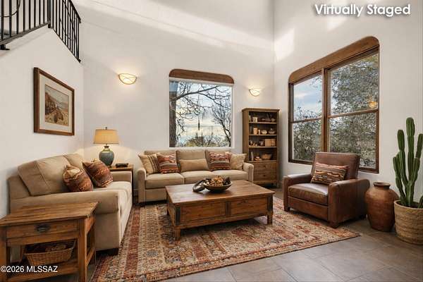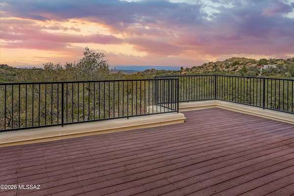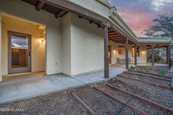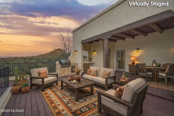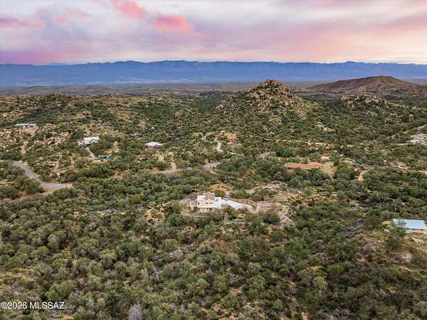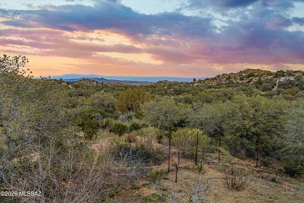 Custom hacienda nestled on a private 3.23 acres (with additional 2.82 acres available to purchase) off Cody Loop with BREATHTAKING views in the heart of Oracle! At 4,800 ft elevation, this rare offering represents true southwestern charm in a simple, yet sophisticated package. This single story home boasts soaring ceilings showcasing amazing artistic style with substantial viga beams that make an impressive statement the moment you step into the foyer. The sunken living room could easily function as an office, den, or even a formal dining area. The spacious great room highlights a cozy wood burning stove, lots of natural light and is open to the kitchen. Alder doors and cabinets throughout add an inviting warmth to the home, while the chef's kitchen offers ample storage and counterspace for all your culinary desires. The split bedroom floor plan provides privacy for all, and the primary bedroom includes a large sitting area that can function as a multitude of options. The ensuite offers a large soaking tub, separate shower and a closet you can get lost in! The stairway leads up to the big reveal: an outdoor north facing viewing deck complete with powder room and outdoor kitchen! It is truly an inspiring place to sit and stargaze, take in the amazing sunrises/sunsets or simply enjoy the nature all around you. The three car garage is a necessity, and you must explore the grounds to uncover the hidden gems, such as mature orchards with peaches, cherries, plums, figs and pears (just to name a few of the varieties grown here), custom stonework and a vast rainwater harvesting system. Only 0.5 mile from the Arizona Trail access and the surrounding Coronado National Forest, this estate offers quintessential rural living close to big city amenities. Come experience what peace really feels like!