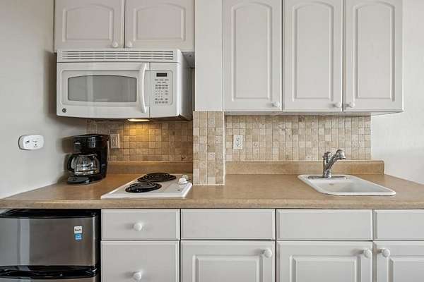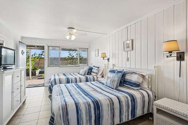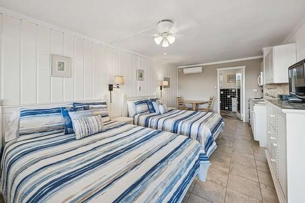 As you step into the studio, you'll find a well-designed space with two queen beds and a full bathroom, ensuring comfort for all occupants. The kitchen is fully equipped, ready to inspire culinary creativity.