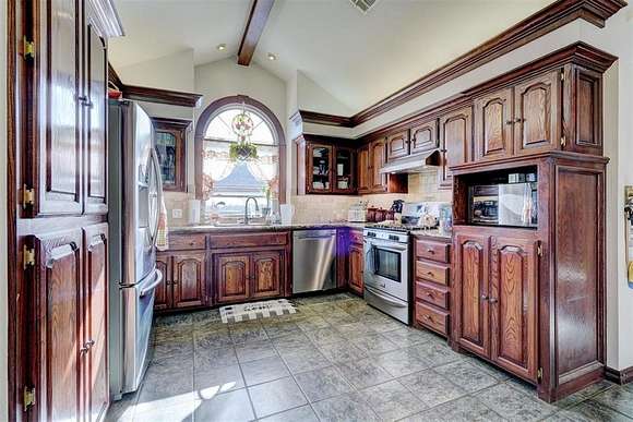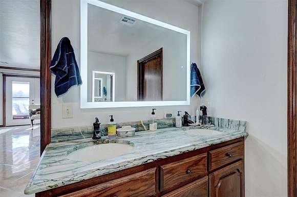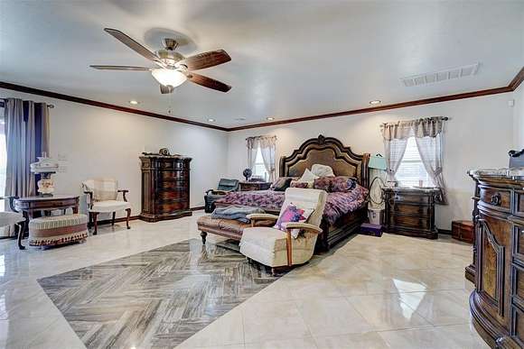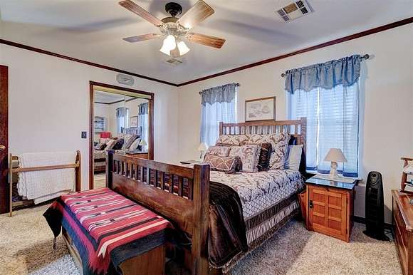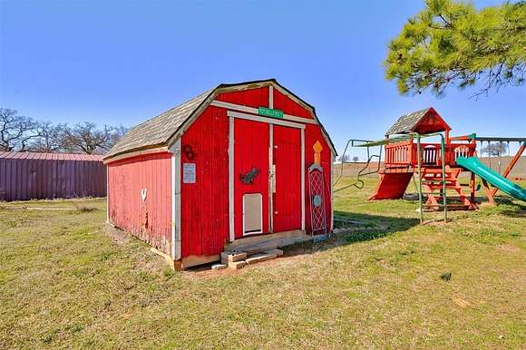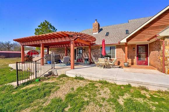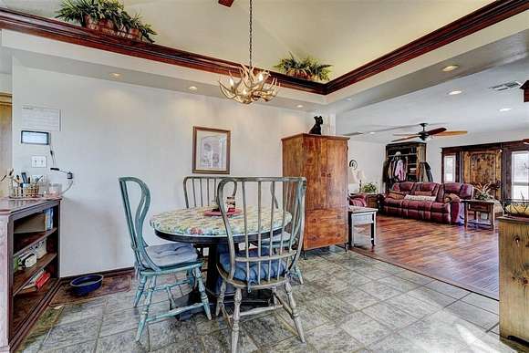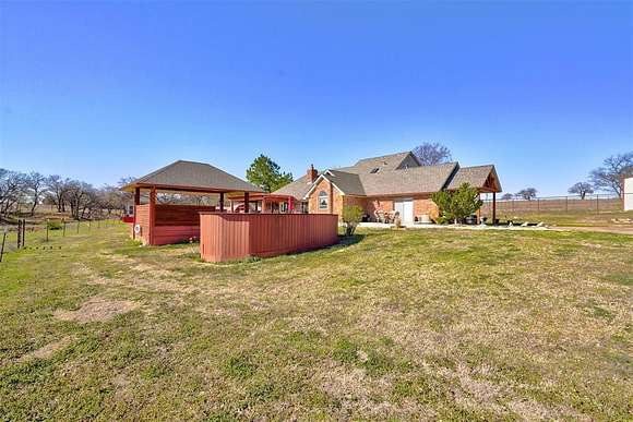 Gorgeous property sits on 27.5 acres (option to purchase up to 41 more acres is still available) with 2 stocked ponds, 3 pastures, hay meadow. Main house is approx 2975 sq ft (with approx 736 guest house/rent house), formal dining with wood burning fireplace, built ins, split bedroom plan with 2 true masters, and 3 bedrooms have 3 full bathrooms), electric fireplace in master bedroom with safe room, hot tub outside Master bedroom on extended covered patio. Master bedroom is approx 800 to 900 sq ft( buyer to verify), 2000 sq ft workshop with kitchen, 4 bays, post lifts, 12k sq ft big barn, horse corral, tool shed, and can be 2 income producing property without doing anything for one. Cell tower on property but rights stay with the owner. (Call for more information on cell tower). Outdoor kitchen and firepit, and so much more.