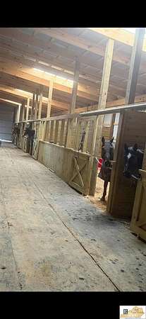 Welcome to a truly exceptional 57-acre lakefront property offering the perfect blend of luxury, function, and opportunity. Tucked back off the road for privacy and tranquility, this 2025-built equestrian and shop compound is a dream come true for horse owners, business operators, or those seeking a premier recreational retreat. The 2,400 sq ft (24x100) horse barn features 7 rubber-matted stalls, complete with water and electric, and is supported by two fenced paddocks with two run-in sheds, creating an ideal setup for your horses. The impressive 60x100 insulated shop boasts concrete floors, water, electric, and full 110/220 hookups, along with two 16' wide x 14' tall bay doors and four 12' wide x 14' tall bay doors, making it perfect for equipment, business use, or storage. Attached living quarters offer 920 sq ft of thoughtfully designed space, including 600 sq ft on the main level and a 320 sq ft loft. This 2-bedroom, 1-bath living area showcases quartz countertops, custom cabinetry with soft-close features, mini-split systems, and a custom tile shower, all finished with quality craftsmanship. LED lighting illuminates the exterior of the entire property, enhancing both beauty and security. Adding even more value, a 36x60 basement foundation is already in place, providing a head start on a future home or additional structure. Enjoy breathtaking lake frontage and water views, with over 800 feet of property adjoining the Corps of Engineers shoreline, offering unmatched access and scenery. Whether you envision a private estate, equestrian facility, business headquarters, or recreational paradise, the possibilities here are endless. This is more than a property -- it's a lifestyle. Opportunities like this are rare, and the potential is truly limitless.