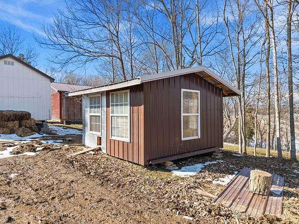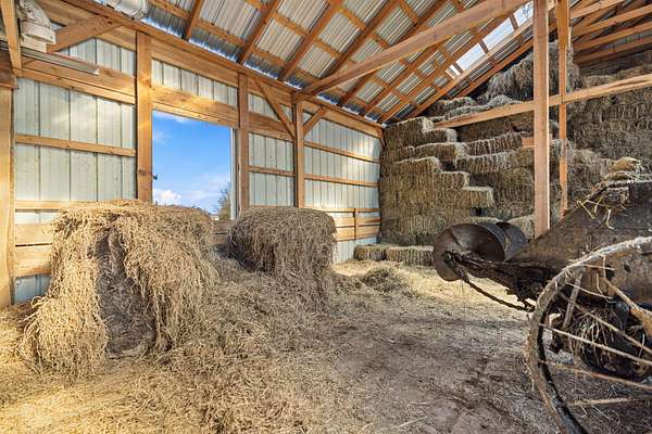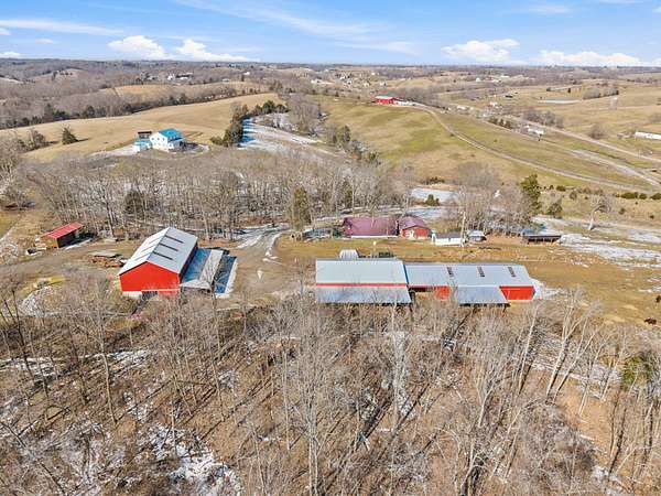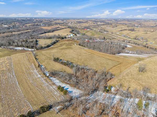 Discover 103 remarkable acres of usable, thoughtfully maintained Kentucky farmland offering the perfect blend of working farm functionality, recreational paradise, and peaceful seclusion. It is rare to find acreage of this size that is so accessible and clear while still maintaining the natural beauty that makes country living so special. Established trails wind throughout nearly the entire property, allowing easy access by foot, ATV, or truck. Whether you are checking livestock, riding horses, hunting, or simply exploring, the layout makes full use of the land. A picturesque creek runs beside and through the property, creating a serene backdrop where the sounds of flowing water and birds provide daily tranquility. The owners especially love picnicking by the creek - a simple but unforgettable experience this farm offers. An active spring further enhances the land's versatility and long-term value. Agriculturally, the farm is well-positioned with three established hay fields, one corn field, and approximately 30 acres of cropland. Portions of the property have been intentionally left wooded and uncleared to create ideal wildlife habitat, drawing abundant deer and supporting exceptional hunting opportunities. The farm backs up to additional acreage, providing remarkable privacy and a true sense of seclusion. The improvements, built primarily between 2022-2025, are substantial and designed for serious agricultural use: - 36x60 two-story timber frame barn with concrete poured walls, 7 box stalls and 8 tie stalls for horses, drive-in hay loft with double doors, built-in storage and tool room, plus an 18x60 lean-to and large gravel lot for truck and trailer access. - 40x60 pole barn with metal siding and roof, concrete floor, 12' sidewalls, 12x20 drive-through openings on both ends, currently used as a machine shed and shop, plus a 16x60 lean-to with cattle shelter and small fenced lot. - 36x64 pole barn with metal siding and roof, packed gravel floor, double 10x16 doors on both ends, 10' sidewalls, 20' roof addition and 16x32 lean-to, currently used as a cattle barn. - 14x30 three-part chicken house with fenced run, center feed room, layer section, and insulated brooder section. - 12x12 chicken/small animal house. - 10x32 three-sided run-in shelter for livestock. - 12x24 storage building (non-insulated). - 24x24 insulated studio-style cabin currently used as bedrooms, offering excellent potential as guest quarters, hunting cabin, office, or retreat space. The 1,728 sq ft cedar-sided home sits comfortably within the landscape and features a covered concrete porch perfect for taking in the peaceful surroundings. With its natural beauty, agricultural capability, extensive new improvements, and unmatched privacy, this property offers a rare opportunity to own a true working farm that also feels like a private sanctuary. Whether you are seeking a horse operation, cattle farm, hunting retreat, homestead, or multi-use agricultural property, this farm delivers productivity, recreation, and peace in one extraordinary setting.