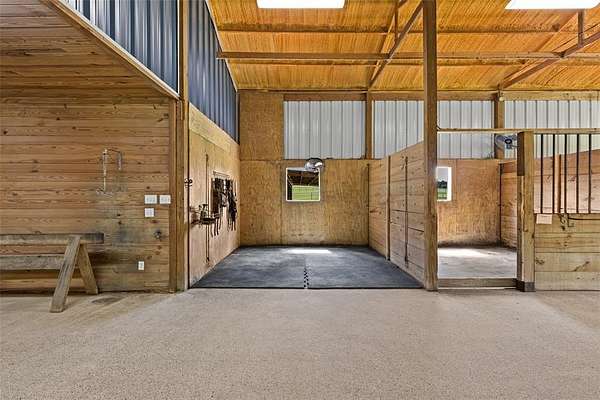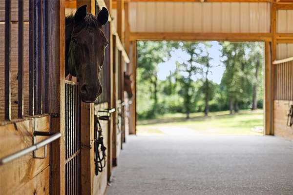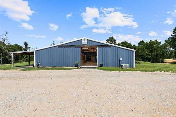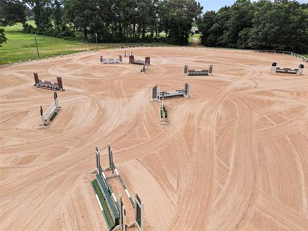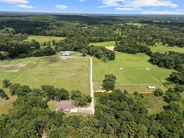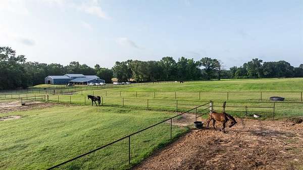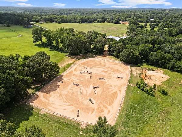 Nestled on a quiet county road just 10+- minutes from Tyler, Hidden Oaks Ranch offers 50+-AC of peaceful seclusion, lush rolling pastures, and premier equestrian amenities--all within reach of town. Situated on the property's highest point, the ranch-style home offers 5 bedrooms, 3.5 baths, and sweeping views of the surrounding paddocks and pastures through oversized windows and French doors. The equestrian facilities feature a renovated 24-stall barn with a 1,920+- SF second-story addition, ideal for building out guest or ranch staff quarters. The barn offers two tack rooms, a stone wash rack, grooming bays, laundry room, office spaces, and a bathroom, the setup is designed for both private use or a professional training program. A shaded path winds to a lit 150x300' outdoor arena, perfect for riding or hosting clinics. There are 11 pipe-and-no-climb fenced turnouts that provide safe, sandy footing--perfect for turnout, exercise, and grazing. A scenic pond and approximately 80' of soft elevation change add natural beauty and character to the land. Located in Whitehouse ISD and outside city limits, this turn-key ranch offers privacy and potential for those seeking a working horse property, weekend retreat, or long-term homestead in the heart of East Texas.